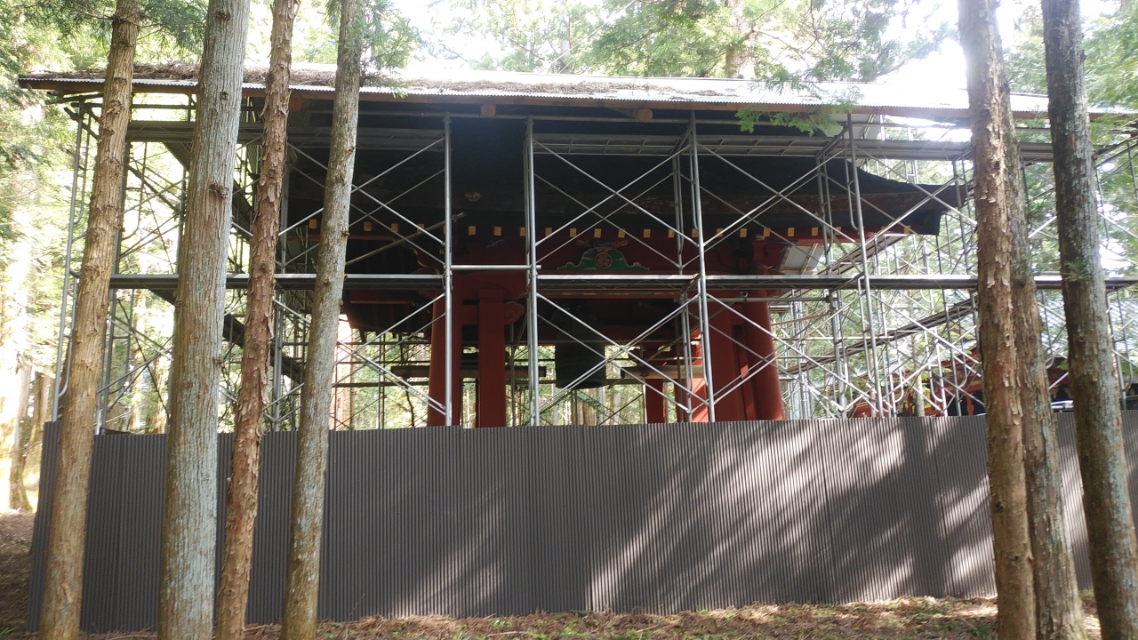 東照宮の正門を潜ると右手に鳥居が見えますが、東照宮特有の社殿できなく神社境内ではありません。御仮殿とは、本殿の修理や建替えの工事をする際に、本殿での祭神を一時的にお遷しする為の「仮の本殿」と言う事だそうです。工事が終わるまで本殿となり全ての神事が御仮殿で行われ参拝もこの場所になります。本来工事完了後には撤去されますが、江戸時代には定期的に修理かせ行われていたので、次回修理のために残されたそうですが、ひっそりとしていて訪れる人も少なくあまり認知されていない場所でした。