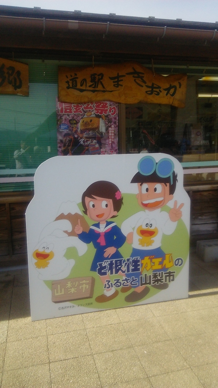 140号をトントン北上していくと道の左側にある道の駅。小規模で売り物も今一つぱっとしない感じだったが、肉厚のしいたけには興味をそそられた。となりに「牧丘郷土文化館」があり、建物がちょっと素敵だった。「ど根性ガエルのふるさと」との看板があったが、いわれはわからない。