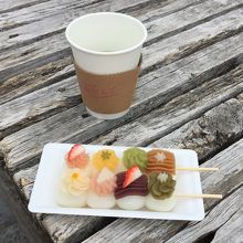 インスタ映えする団子が人気のお店です。犬山の観光ガイドなどには必ず載っています。開店すぐに入りましたが、それでも行列でした。ハッキリ申し上げて、見映えはイイもののお味が残念です。団子がメチャ固いし。1回買ったら次はないかな。