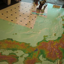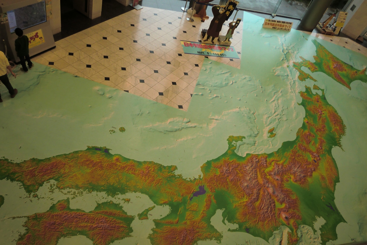 入るとまず、大きな日本地図。3Dメガネを使うと、日本の凸凹がよくわかります。