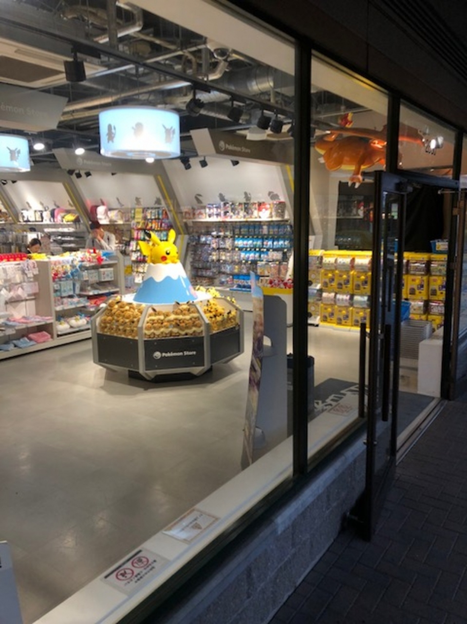 可愛らしいピカチュウなどポケモンのお店で、お店の外の椅子には小さな女の子がポケモンを抱っこしてなでなでいてかわいかったです。
