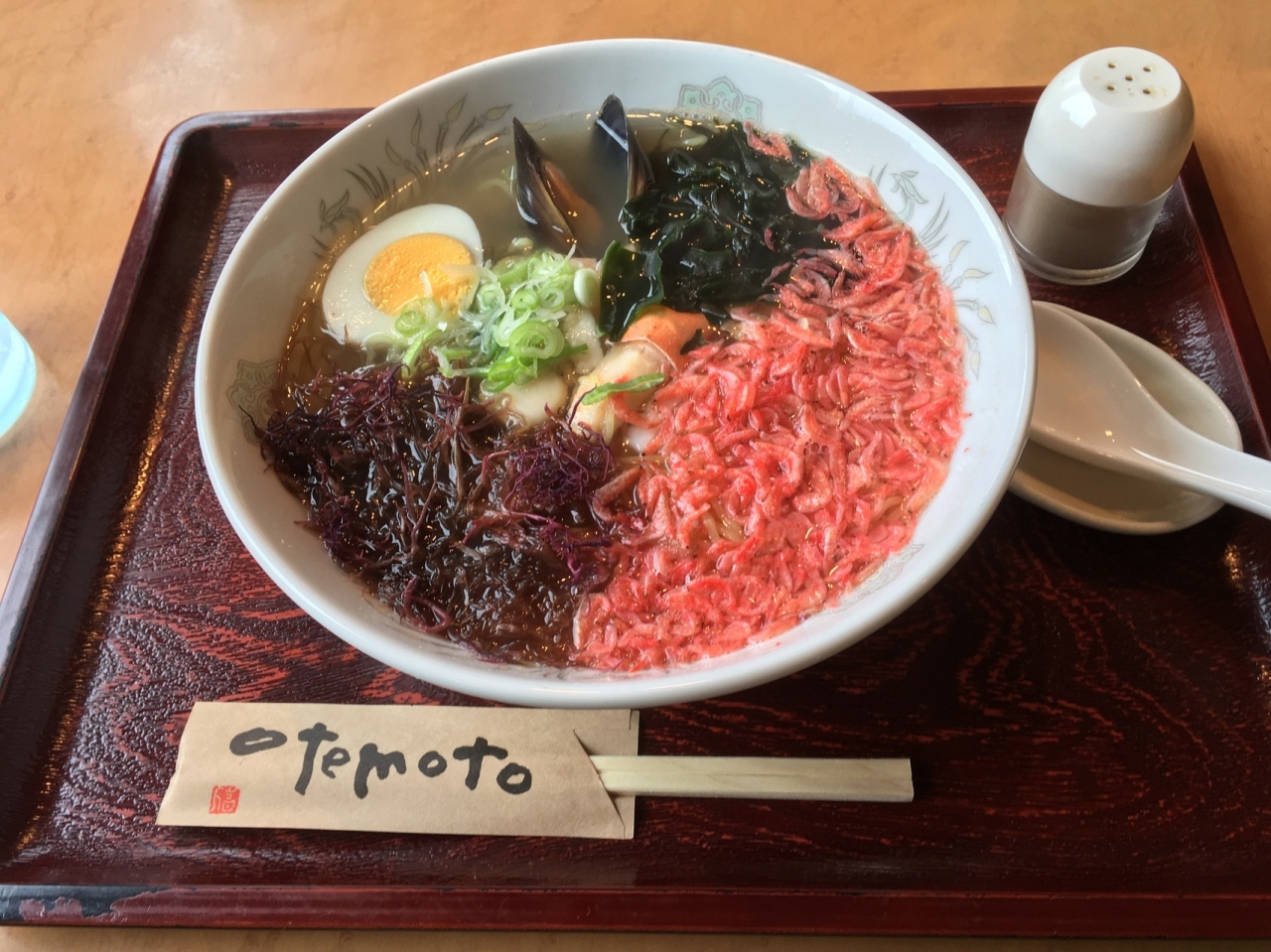 磯ラーメンにはかに、ホタテ、ムール貝、桜海老、もずく、いかなどがのっていました。ボリュームもたっぷりで満腹になりました。これで、900円しないのはとってもお得です。