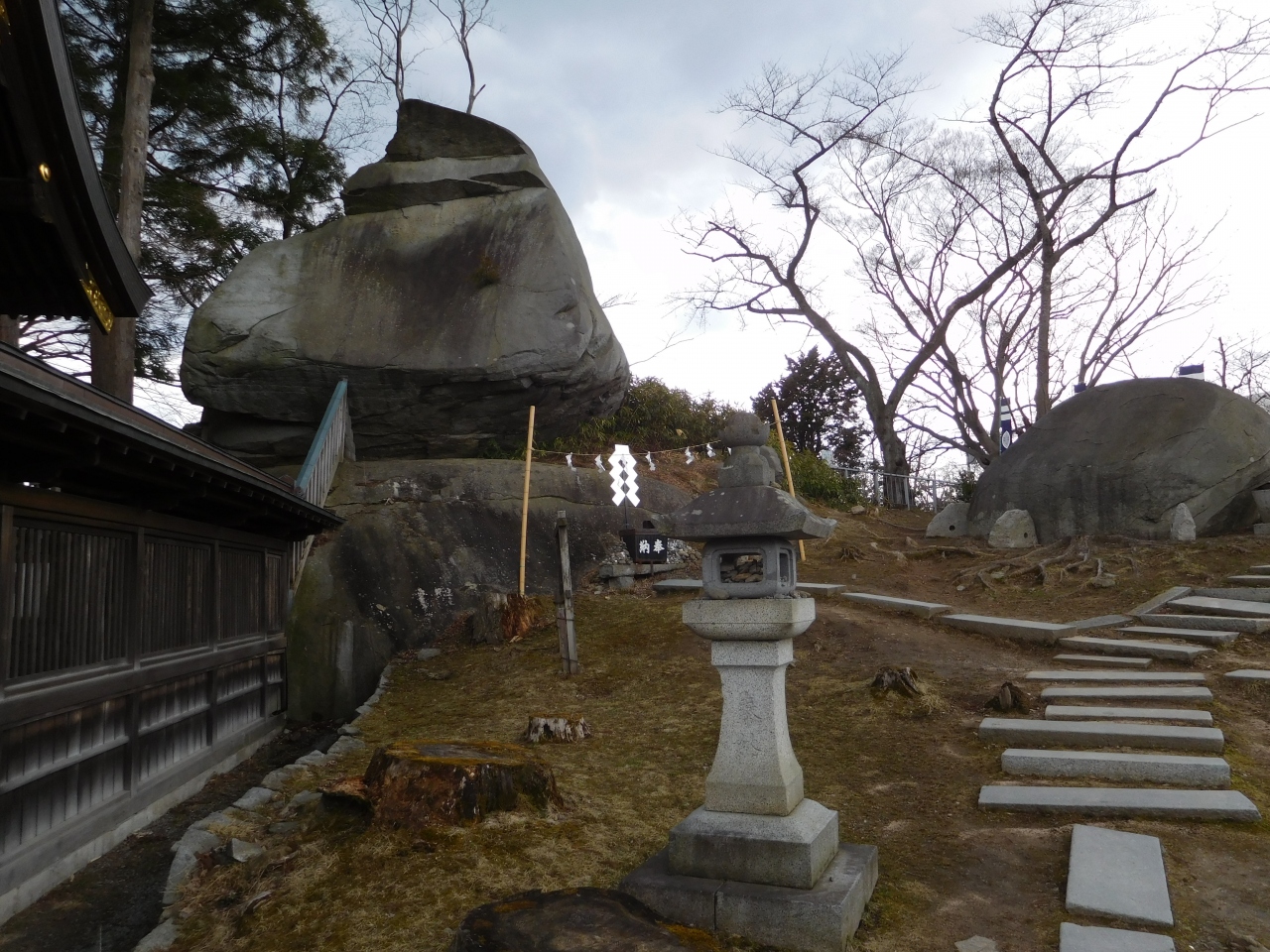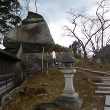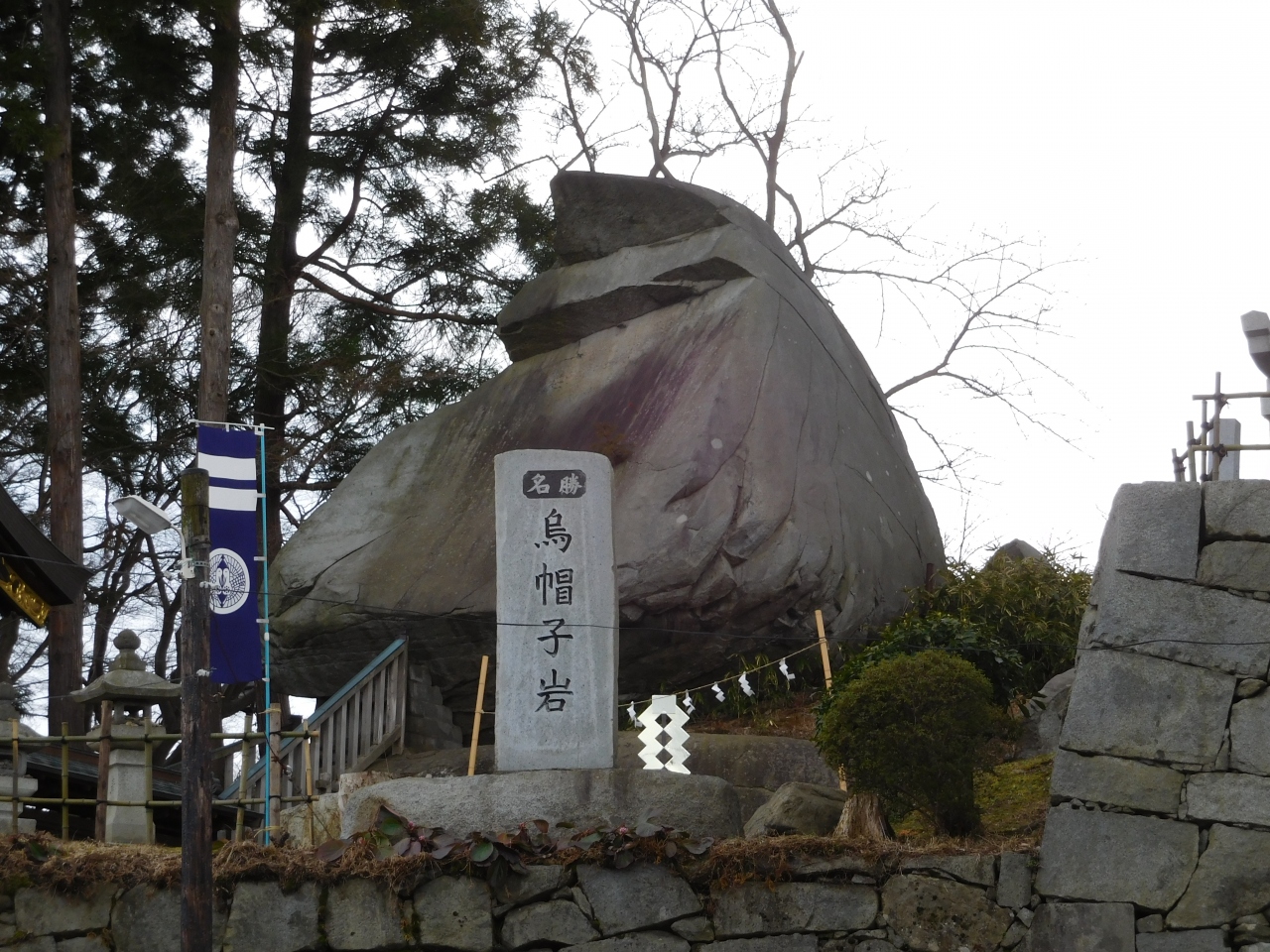 「櫻山神社」の駐車場近く、小高い場所にそびえ立つようにして「烏帽子岩」が鎮座しています。神社の脇にある階段を上っていくと、「烏帽子岩」のすぐ近くまで行けるようになっていて、岩の向かい側には、南部稲荷神社も祀られていました。南部藩盛岡の吉兆のシンボルとして崇められているようで、とてもパワーを感じました。