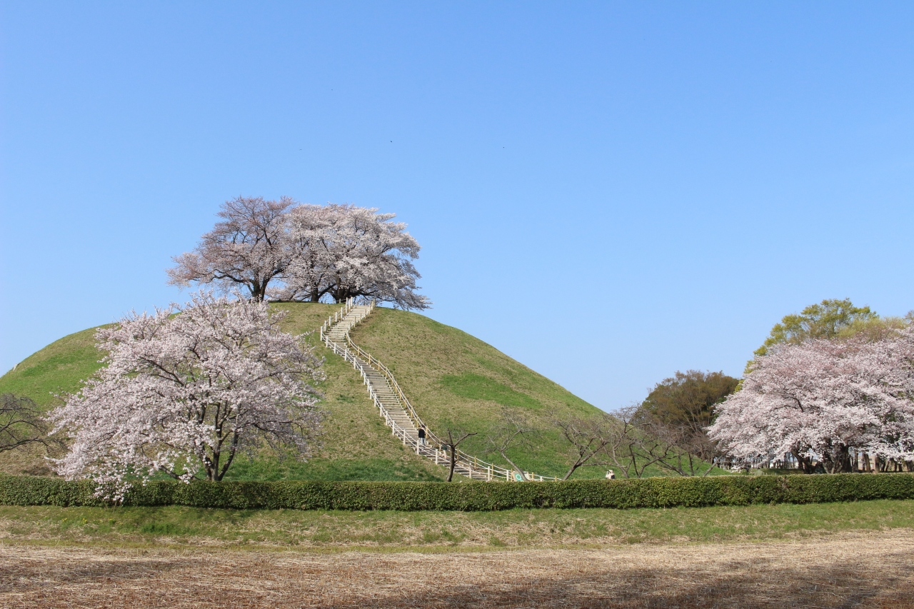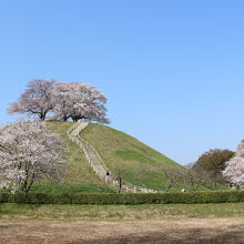 古墳の丘の上に桜があって、麓の桜と合わせてすばらしい景色でした。