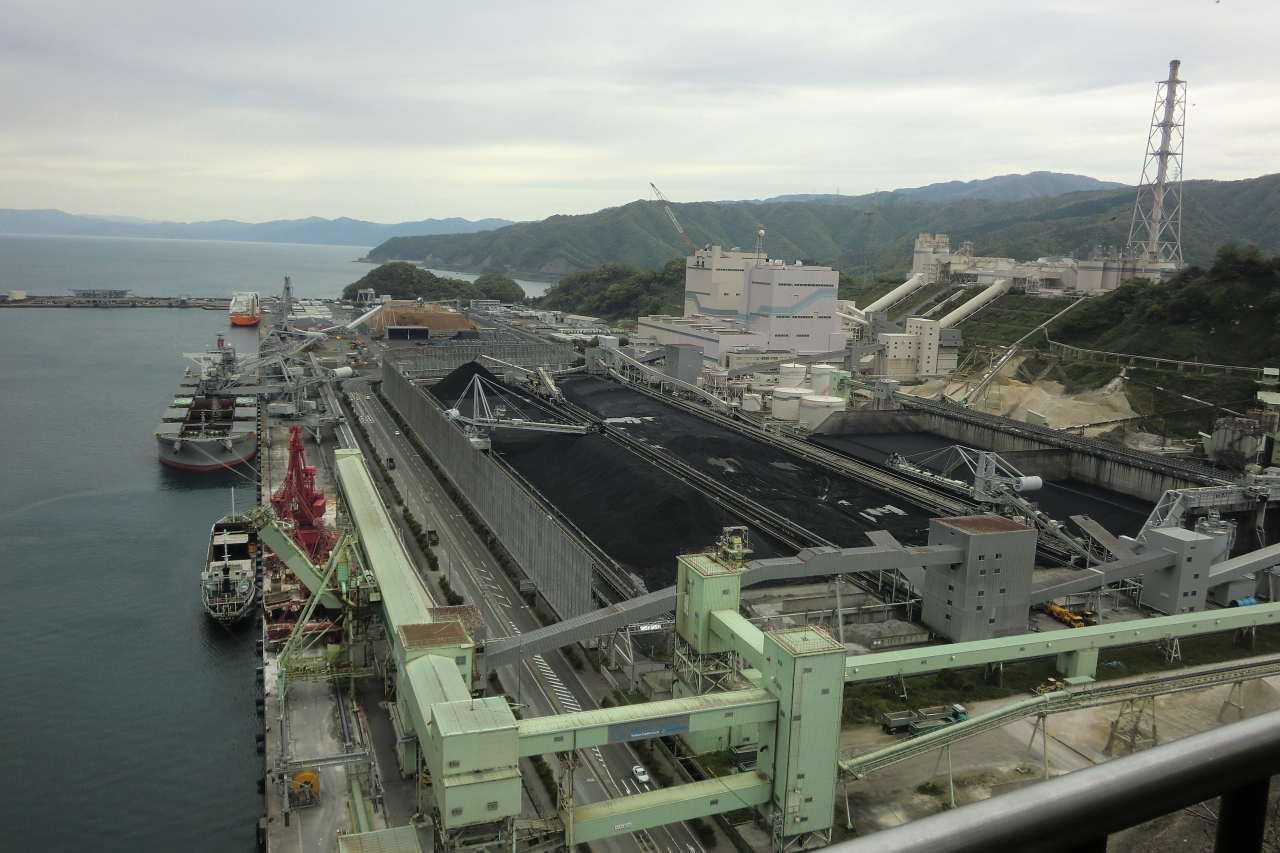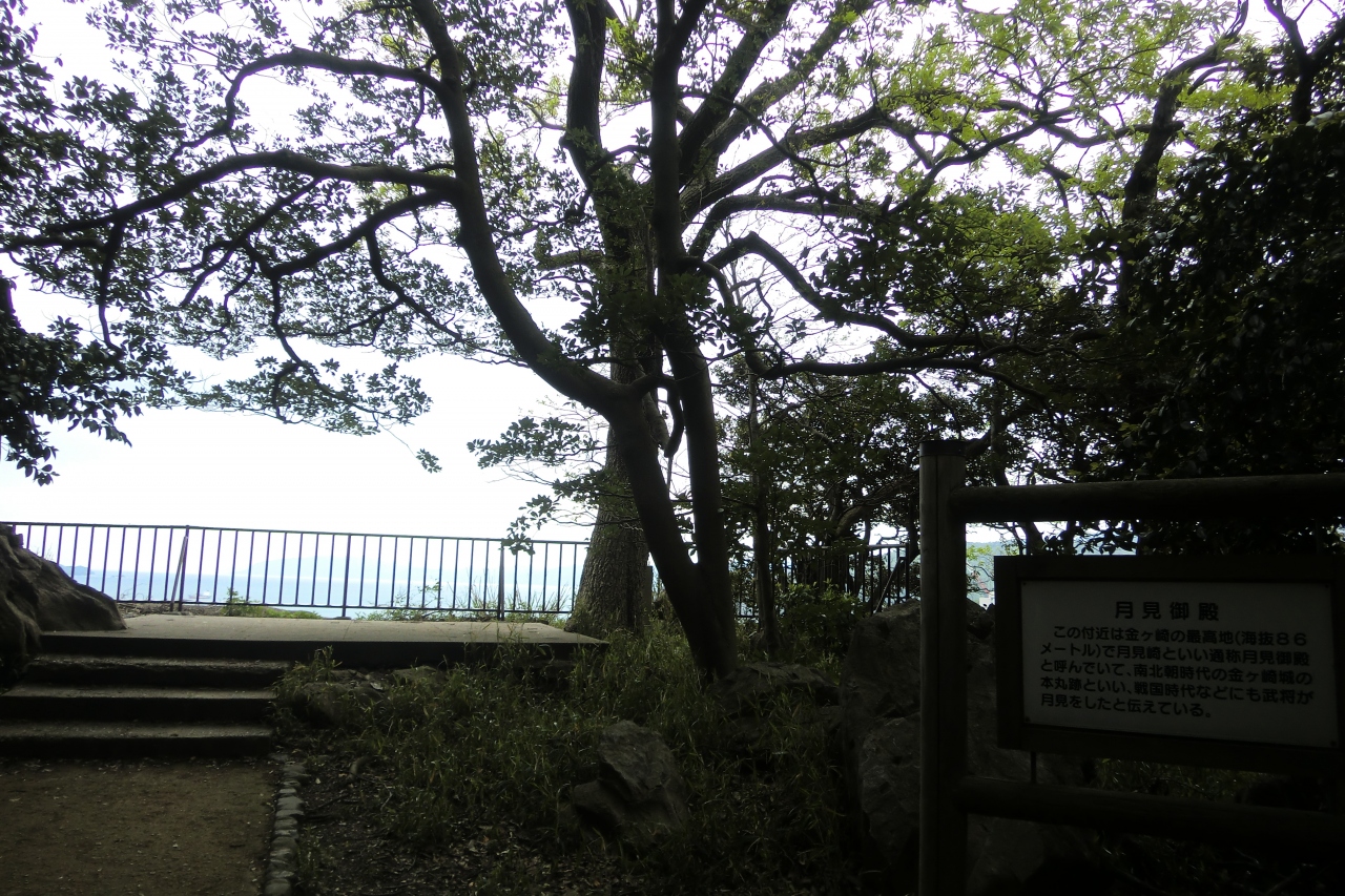 階段を上がり切った一番上には、月見御殿があって、そこからは目の前の敦賀新港がよく見えます。