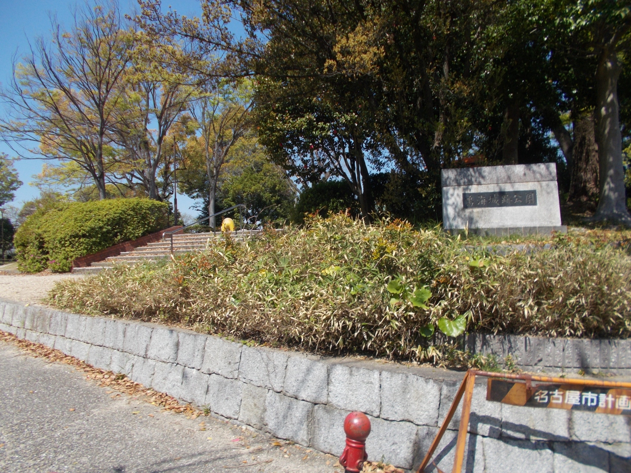 この鳴海城跡は名鉄鳴海駅から北側に上ると5分程度の場所にあります。今は鳴海城主公園になっています。公園はかつての鳴海城の本丸があった場所のようです。今は城の遺構はほとんどの買っていません。わずか土塁らしき場所があります。