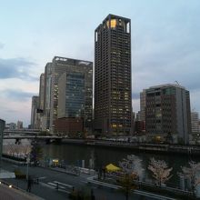 ABCホールでの演劇鑑賞のために伺いました。JR環状線の福島駅から徒歩で10分弱ですが、福島側からの長い階段が印象的でした。ホール入口は川側にあり、ちょうど高台になっていたので、夕刻の堂島から梅田方向の夜景がきれいでした。