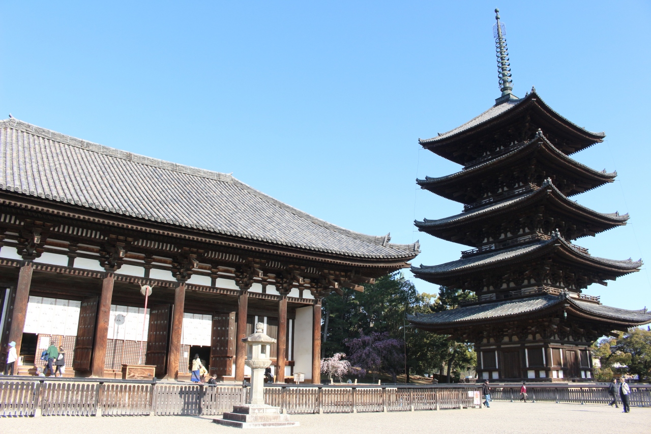 興福寺の五重塔は、入場料を払わなくてもすぐ近くまで行くことができ、奈良を象徴する景色を見ることができるので有り難いです。南に坂を下っていくと猿沢池があり池越しの五重塔を見ることができます。