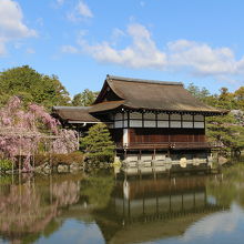 以前に平安神宮を訪問した際に、案内マップに裏手の広大な池が広がっていて桜の名所のようでした。今回桜の時期に再訪し入場しましたが、池は案内マップほどの大きさではなかったですが、その分波風が立ちにくくきれいな映り込みの風景を見ることができました。