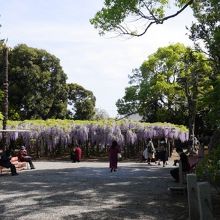 藤園自体は規模は大きくない。藤棚は複数あり、最も大きいものが国の特別天然記念物で樹齢1200年だそう。