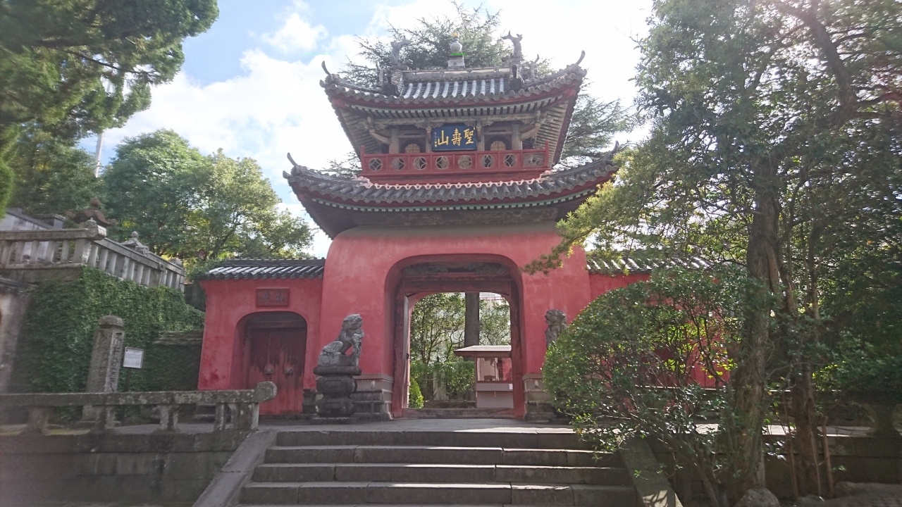 長崎市に観光したときに崇福寺にいきました。崇福寺は1629年に長崎に滞在していた中国、福建省の人たちによって作られたお寺です。朱色の門を通ってすぐに長い階段が続いていました。また、境内にある本堂、第一峰門は国宝になっています。朱色が印象的なお寺だと思いました。