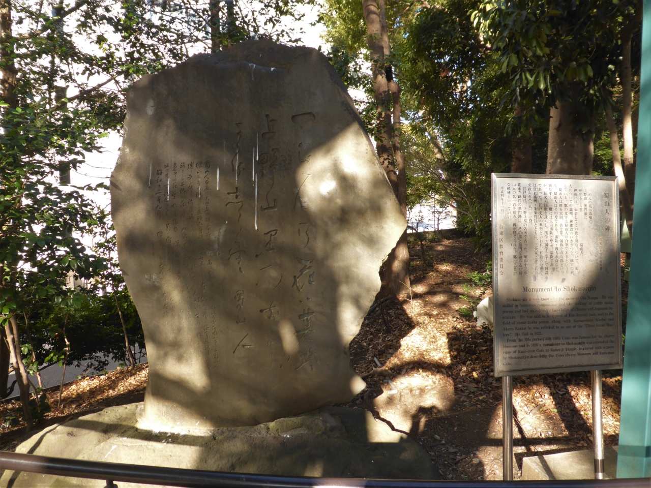 上野公園に入ってすぐの左側の木々に並んでひっそりと建っています。蜀山人(大田南畝)の歌「一めんの花は基盤の 上野山 黒門前に かかるしら雲」一首が刻まれています。現在黒門は移築され壁泉があるのみですが、その黒門の向こうに桜が満開になっている光景を見てみたいものです。黒とピンクの桜のコントラストがさぞ綺麗だったであろうと想像します。