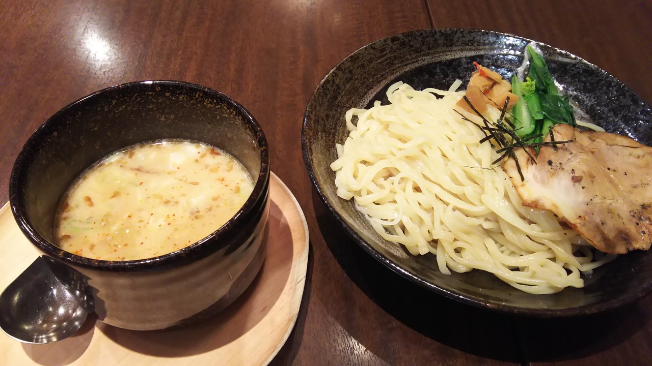 つけ麺の種類も醤油、とんこつ、味噌などいろんな味がありましたが、とんこつを食べました。つけ汁の味はとても良かったのですが、麺はあまり小麦の風味が感じられずまぁまぁかなと思います。つるっとした麺で、のどごしはよいと思いました。