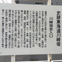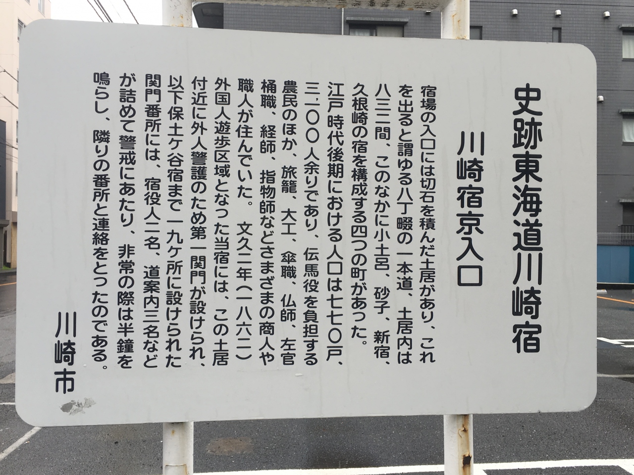 江戸時代にあった川崎宿の入り口で、この付近に、外国人警護のための第一関門があったそうです。