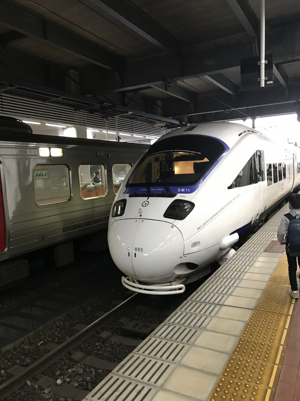 やはり新幹線と比べると揺れが大きく(振り子式の885系だったこともありますが)、連れが不満そうでした。