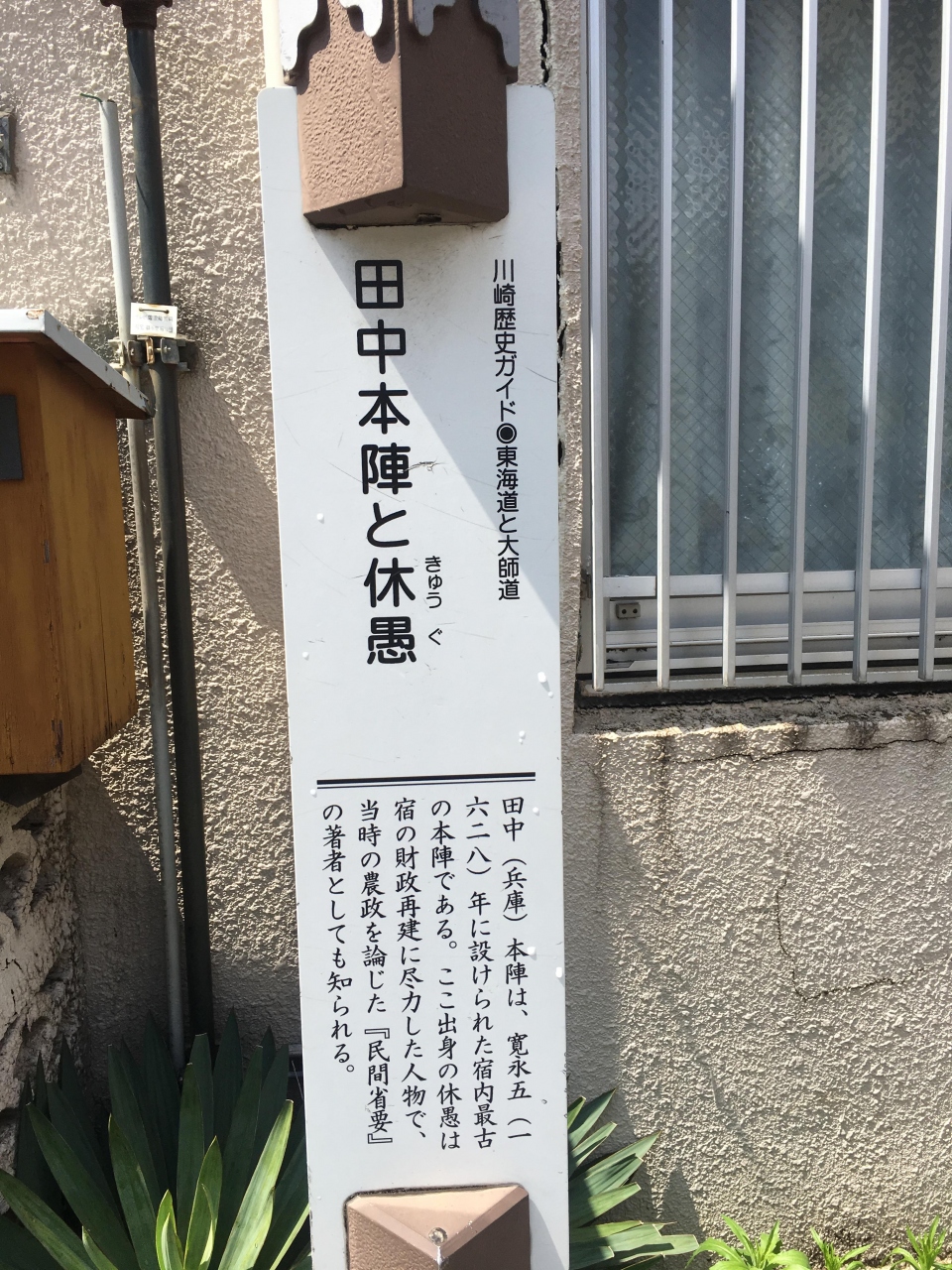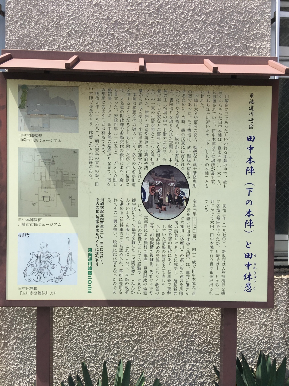 田中休憩について書かれた大きな看板があったので、ほかの川崎宿ゆかりの地と比べるといった甲斐がありました。