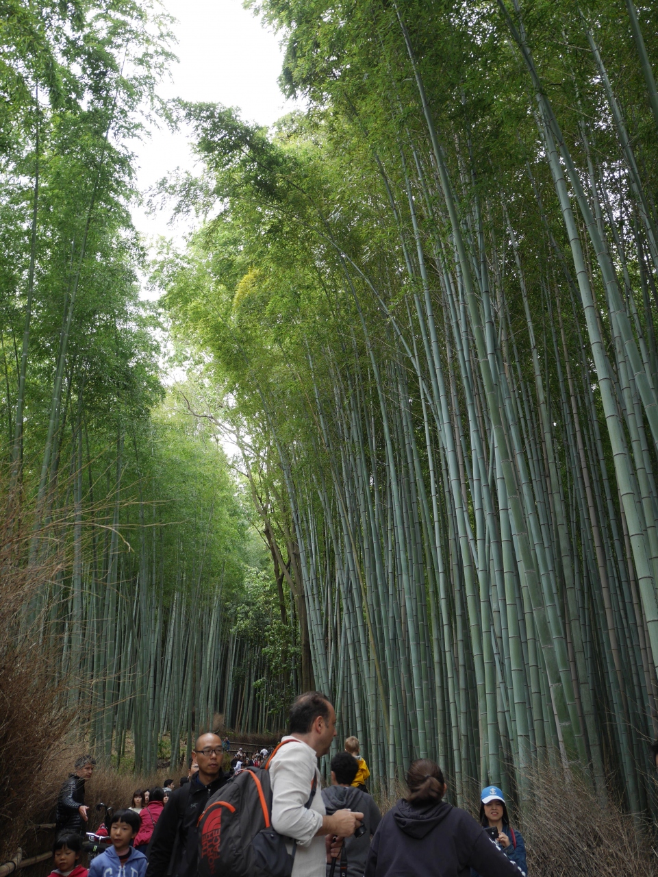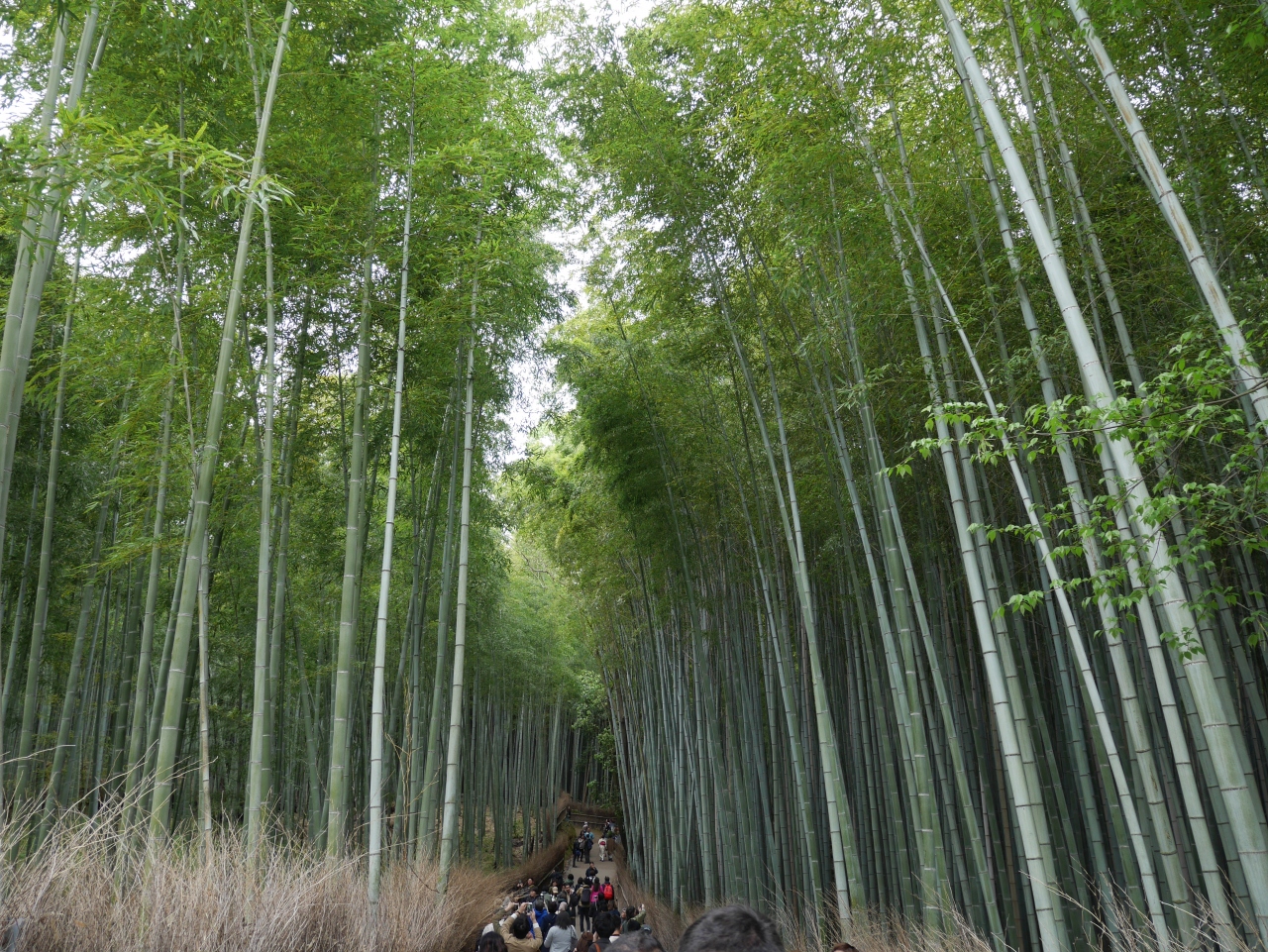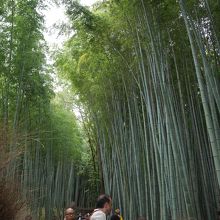 風情のある竹林の道ですが、観光客だらけで歩行困難です。