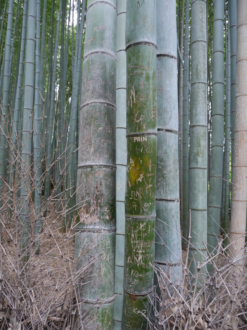 竹に落書きをする輩もいて悲しくなります。