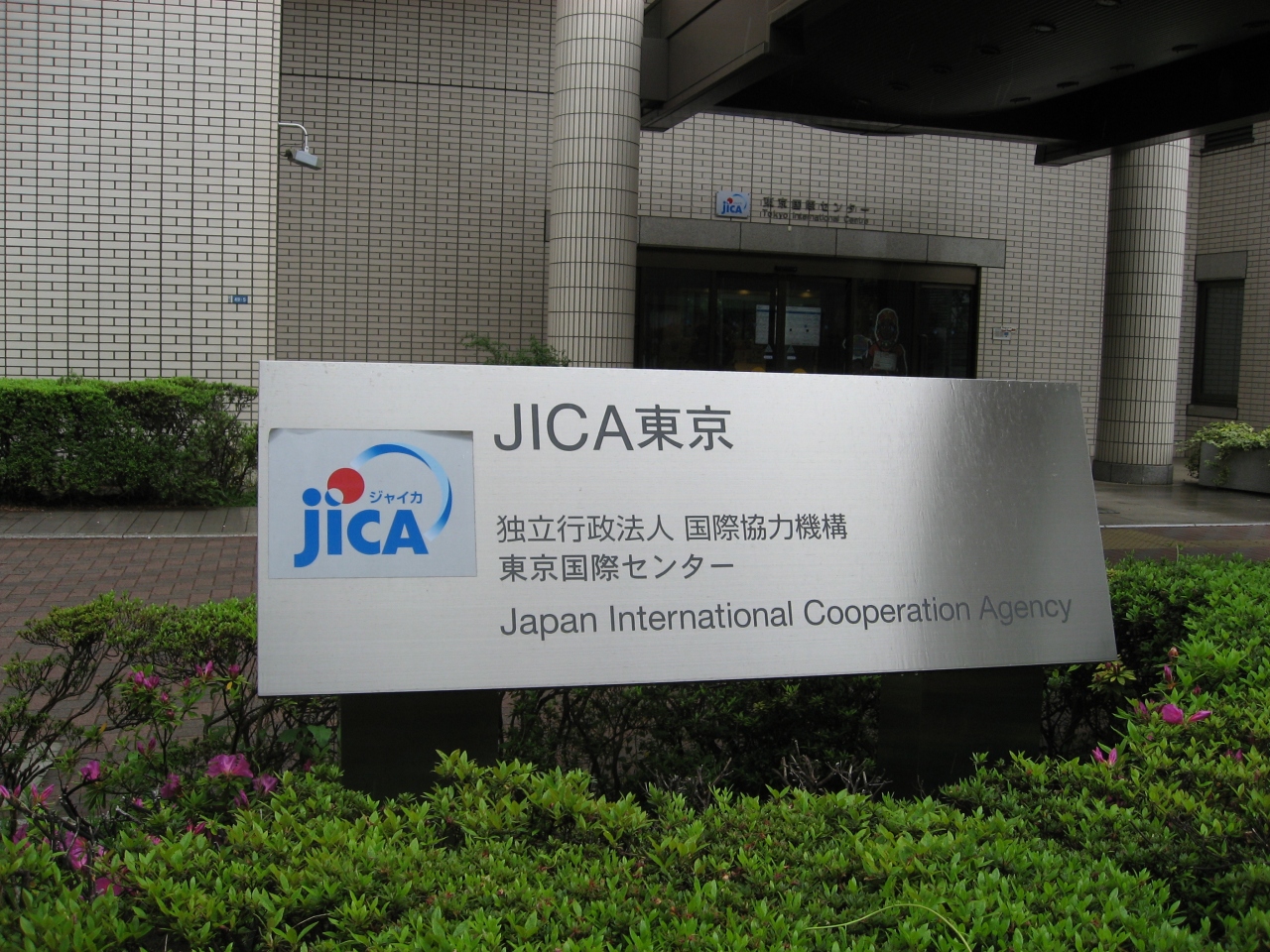 入口で名前と行き先を記入してバッジをもらってからの入館になります。