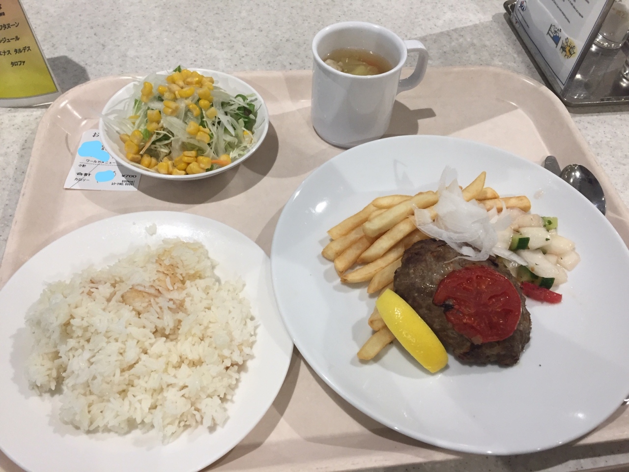 食堂は入口から下に降りた場所にあり、中はとても広いです。