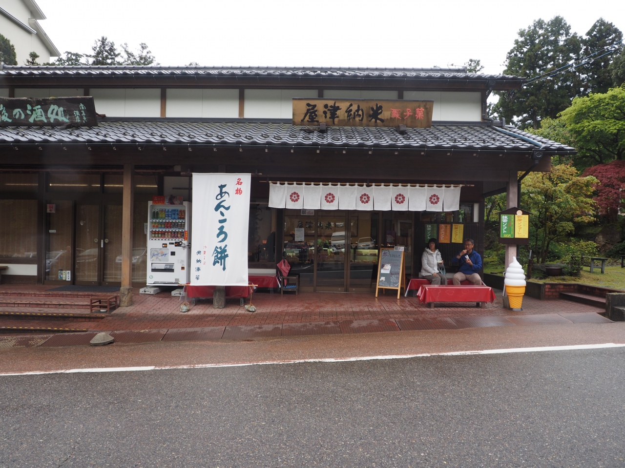 弥彦神社参拝のあとお土産選びで周辺のお店をひやかしていた時に、表の看板にあんころ餅の文字を見つけて入ってみました。