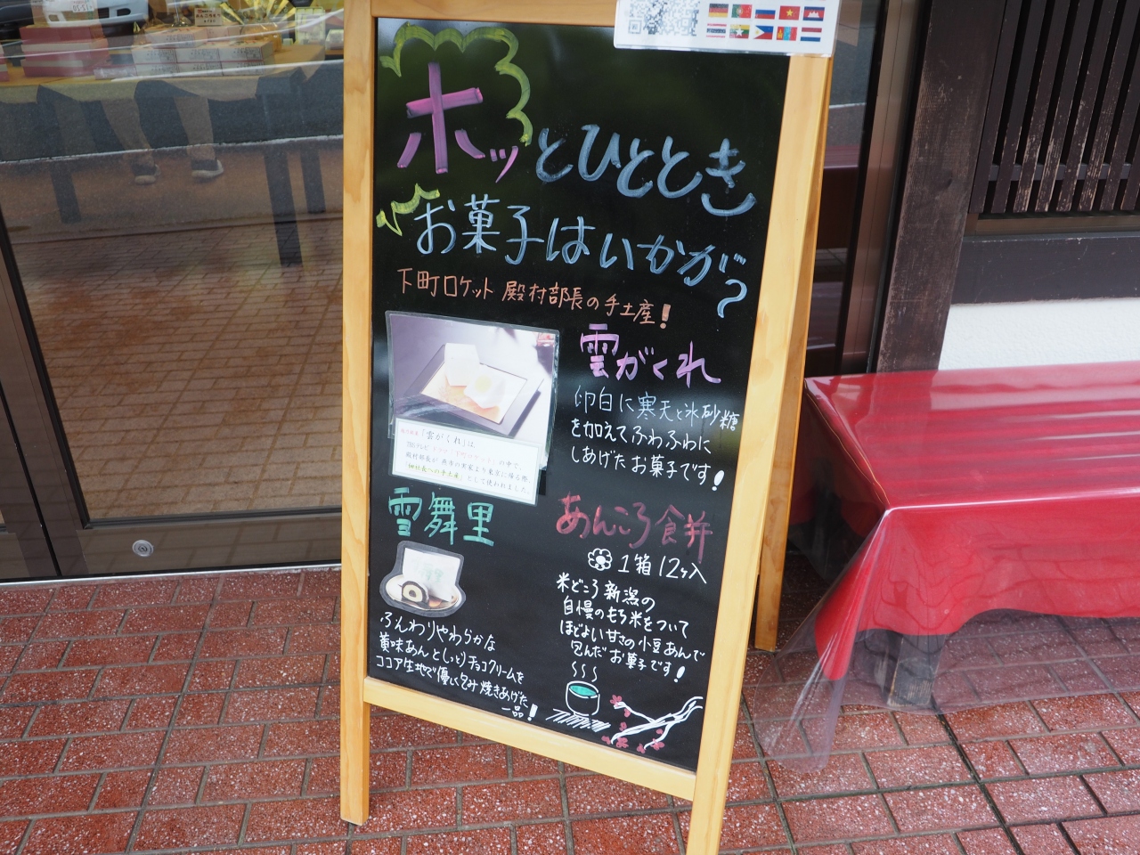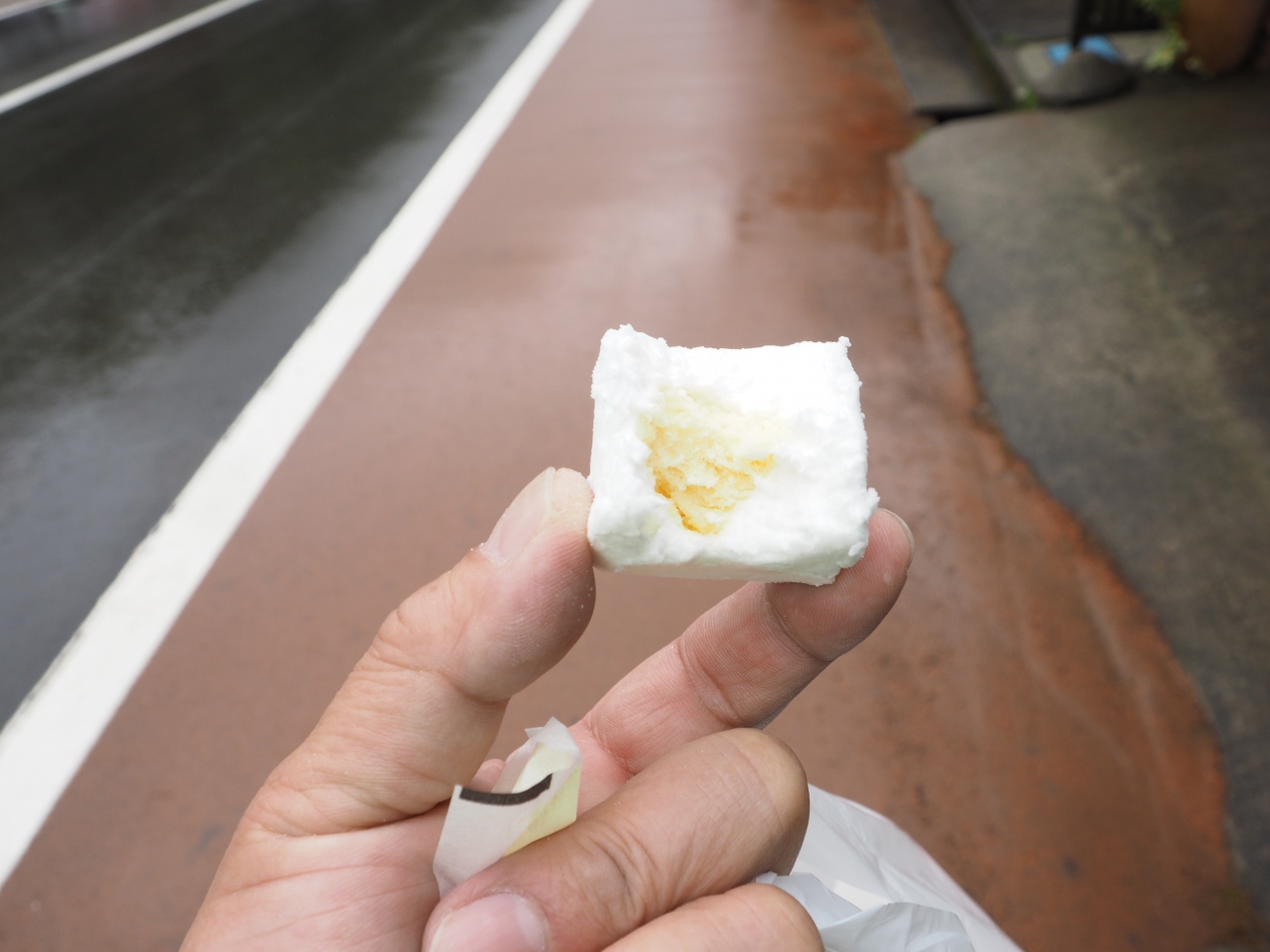 お土産にはあんころ餅を買いましたが、下町ロケットのドラマの中で、殿村が燕市の実家に帰った時のお土産として社長に買ってきた「雲がくれ」というお菓子が気になり一つ買って味見しました。マシュマロのようなメレンゲと寒天で固めた四角いお菓子の中に黄色い餡が入っていて美味しかったです。