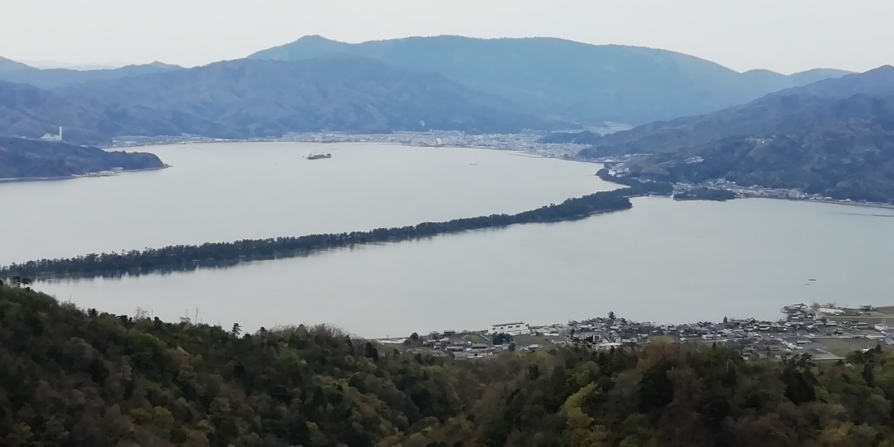 天橋立観光船、ケーブルカー、登山バスを乗り継いで西国28番札所の成相寺に参拝しました。撞かずの鐘、本堂、十王堂を拝観後、境内にある弁天山展望台に上りました。つづら折りの坂道を上ること数分で展望台に着きます。天橋立が一望でき見事な眺めです。傘松公園より高度が上がった分、よりパノラマ感があります。この展望台とは別に天気の良い日には能登半島や白山まで見渡せるパノラマ展望台がありますが片道徒歩40分ですのであきらめました。