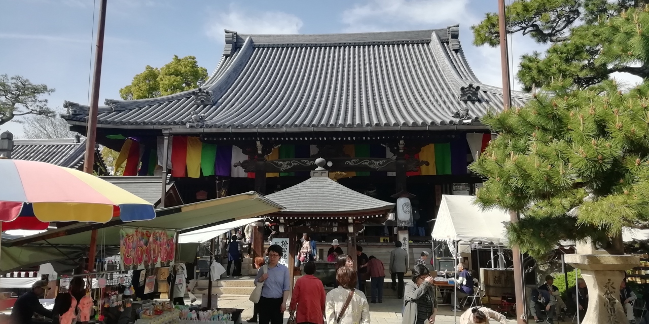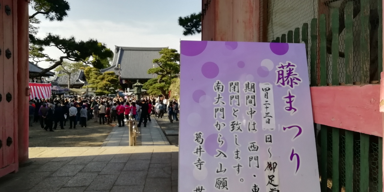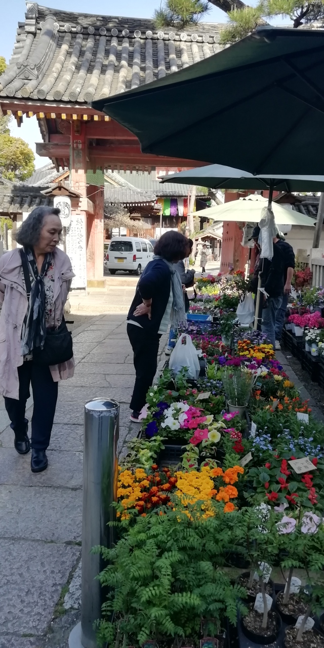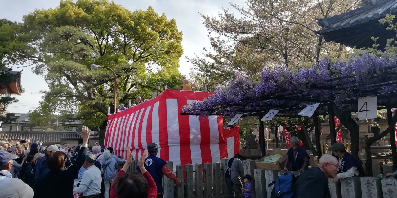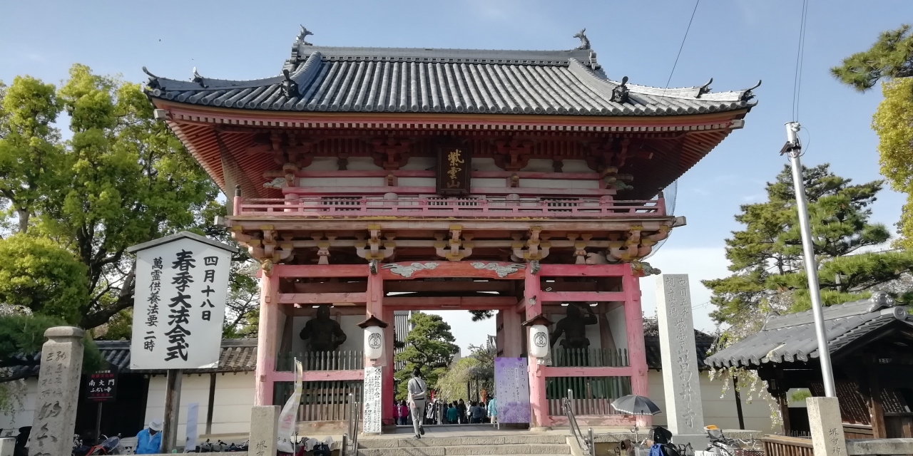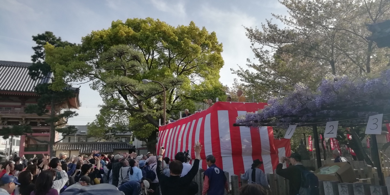 3月に続き4月も西国三十三札所巡り3泊4日旅に出かけました。初日に25番播州清水寺と24番中山寺、二日目に28番成相寺、三日目4月18日の午前中に4番施福寺を参拝、午後5番札所の葛井寺を参拝しました。18日はご本尊の千手観世音菩菩薩の御開帳の日です。近鉄藤井寺駅を降りアーケードの商店街を抜け西門(四脚門)から境内に入りました。門前から縁日の露店が並んでいます。本堂は御朱印待ちの長蛇の列です。特別拝観(500円)で内陣のご本尊の千手観世音菩薩に参拝しました。千本の手を孔雀の羽のように広げたお姿を目の前に拝みます。美しさと神々しさに思わず小さな嘆声をあげます。肉眼では細部まではわかりませんが頭上には十一面を戴き、胸の前で合掌する2本の合掌手、1,001本の小手、宝鉢、宝輪、数珠などを持つ40本の大手、掌にはそれぞれ眼が描かれたまさに完全無欠の十一面千手千眼観世音菩薩です。こうした詳細は内陣裏手のビデオで解説されています。永く忘れ難い観音様です。御朱印は三十三所専用の納経帳に大悲殿、余白のページに蓮華王(千手観音の別称)を頂きました。入ってきた門とは別に本堂と向き合う形でお寺の正門である南大門(楼門)あります。壮麗な門です。境内では16時から縁日のお祝いの餅まきが行われ凄い人だかりとなりました。餅まきが行われたすぐ横に大きな棚があり藤の花が満開で見事でした。1時間半の参拝を終え16時15分にお寺を後にしましたが華やいだ雰囲気の境内はまだ参拝客で賑わっていました。