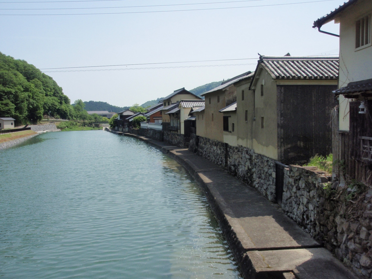 道の駅を出発し、代官所の陣屋門、本陣跡を見た後、因幡街道を南に行く。天神橋に立つと、川座敷、土蔵群が見られ、素晴らしい景観です。連子窓、格子戸の家並みの中を歩きます。左手に瓜生原家があります。昭和初期まで鋳物業をしており、鍋、釜、灯篭等を作ってしました。今はお休み処になっています。店先に鋳物が展示されています。この辺りは古い町並みが見られ、満足できる景観です。六地蔵刑場跡、宮本武蔵が初めて決闘に挑み倒したところ、御殿屋敷跡の石垣等を見て、道の駅平福にもどりました。1時間10分でしたが、数多くの歴史を感じさせる見学所、建屋跡、遺構が見られ、また人出が少なくゆっくり見学できる満足できる散策でした