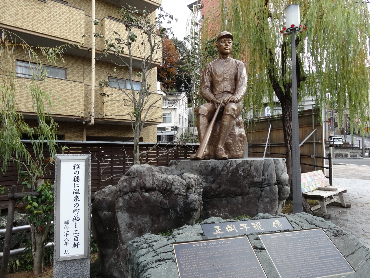 有名な俳人であり、地元のゆかりの正岡子規の銅像です。野球のバットを持つ姿はなかなか珍しいものだと思います。道後駅からすぐで放生園の一角にあるので、アクセスも良くすぐわかります。すぐ先には正岡子規記念館があるので、一緒に訪れるのもおすすめです。