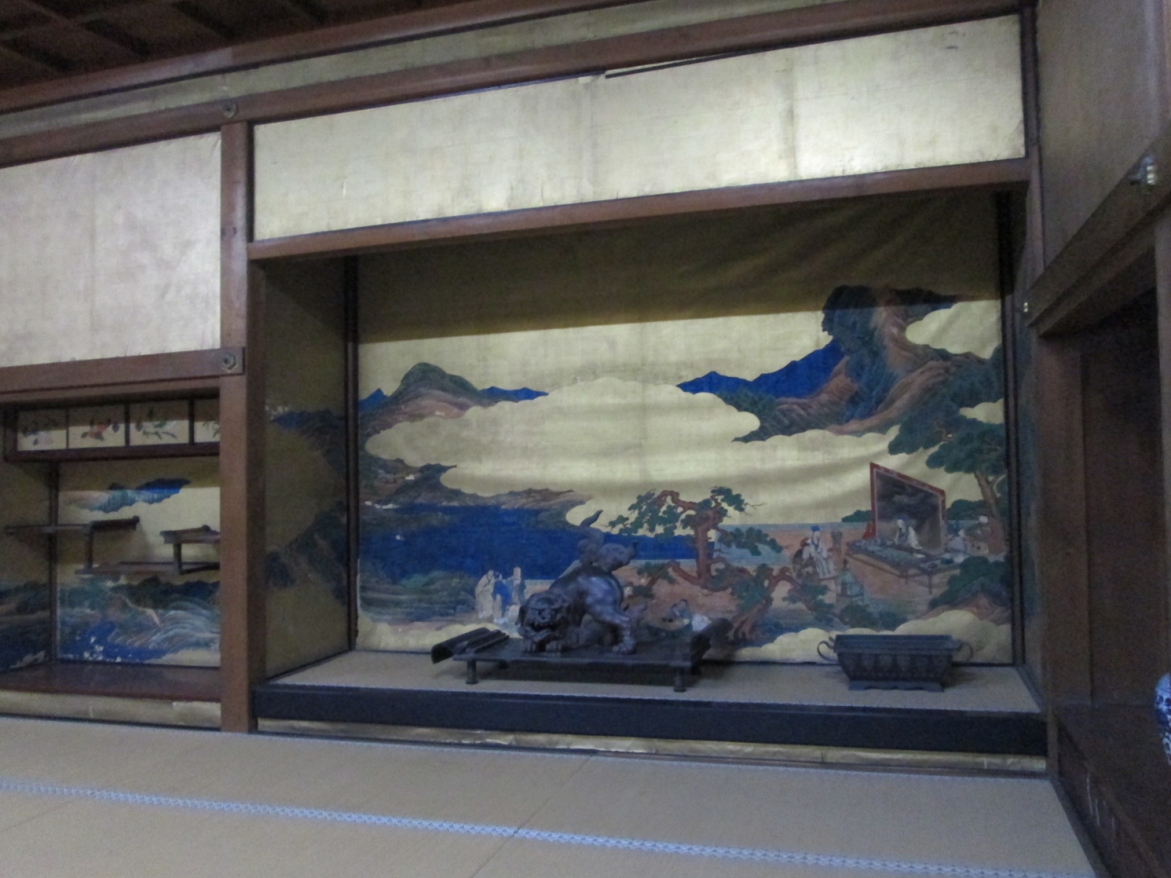 またその奥の「含山軒」なる客室にも狩野山楽・山雪筆の障壁がありましたが、保存状態が良くないのか、すすけた感じでした。