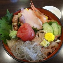 初めて沼津港にいきました。ちょっと干物でも買っていこうかぐらいだったのですが、まず駐車場に入れなくて、人、人、人。こんなに人気があるの?どうもグルメスポットだったのです。運よく駐車場に入って、ぶらぶらしているといろいろな看板と店の情報が入ってきて。とても並んでいる店もありました。食事していこうか?どこに入る?とたまたま入った店がこちらで、何人もウエイト待ち。名前を書いてから、時間がかかりそうなので、外に出て。隣の干物の店が混んでいてそこで、安い干物を買いました。エレベ-タ-で店に戻るとすぐに順番に呼ばれました。メニュ-もいろいろありましたが、生シラスが入っている海鮮丼に生サクラエビを追加しました。海鮮の種類が、とても多く新鮮で、特に生シラスは、2度目でしたがとても美味しかったです。満足して帰りました。