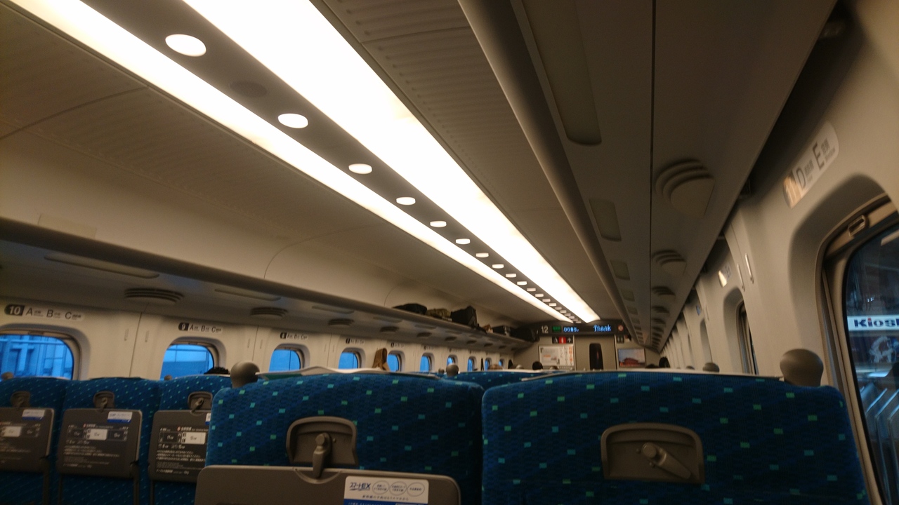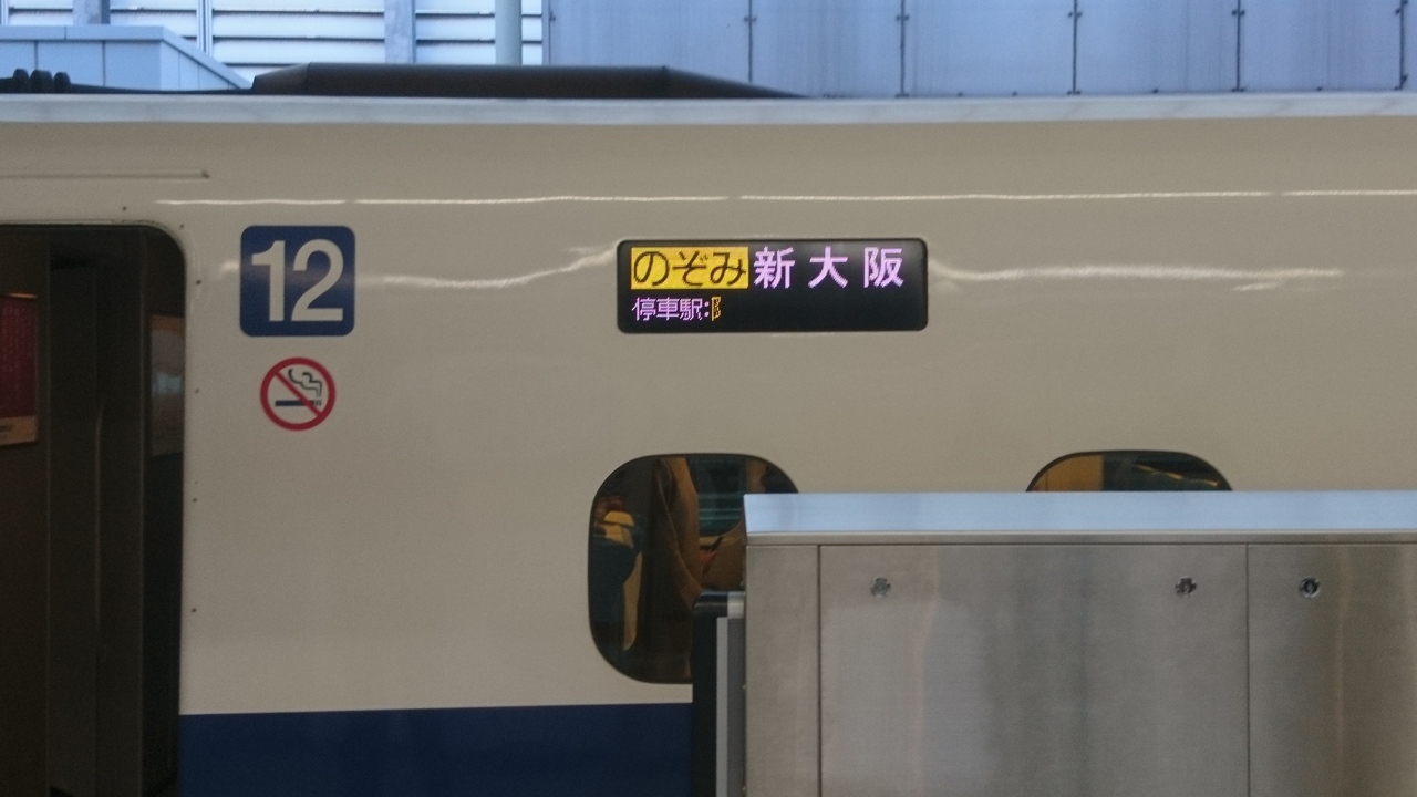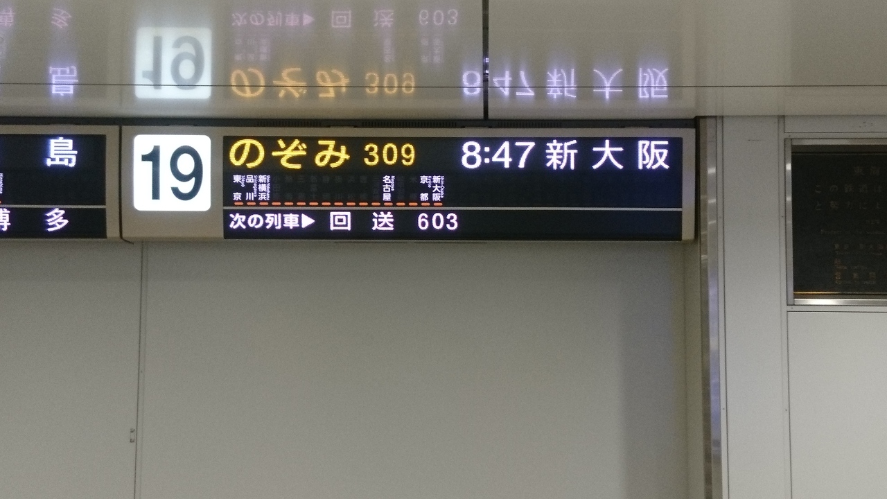 東京駅(8:47発)→名古屋駅(10:28着)のぞみ309号を利用しました。東京~新大阪間の不定期列車です。のぞみの中でも比較的空いている部類のはずですが、新横浜でほぼ満席になりました。N700系の車両は700系と違って喫煙車がないのと、窓際の席にはコンセントがあるので割と気に入っています。