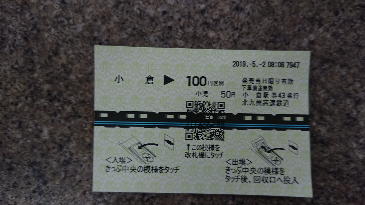 北九州モノレールを小倉駅から平和通り駅までの1区間だけ利用してみました。料金は100円でした。自販機で切符は買えるのですが、改札口に入る時の切符の入れ方が難しい。改札の機械の切符読みとりのの認識が両面ではなくて、片面なので、必ず裏返し(白い方を上)にして改札を通らなければなりませんでした。改札を入る時も、出る時も少し苦労しました。でも楽しい。