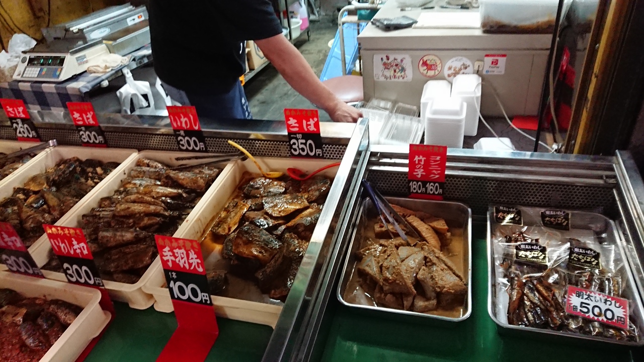 旦過市場のホームページでは、9時からオープンと書いてあったにで、9時頃に行ったのですが、市場の店の半分ほどしか、開いておらず10時からと言われて開店の準備をされている店が多かったのですが、目当てのみそぬかだきの店「たちばな」は開いていたので、イワシと、こんにゃくタケノコを購入しました。