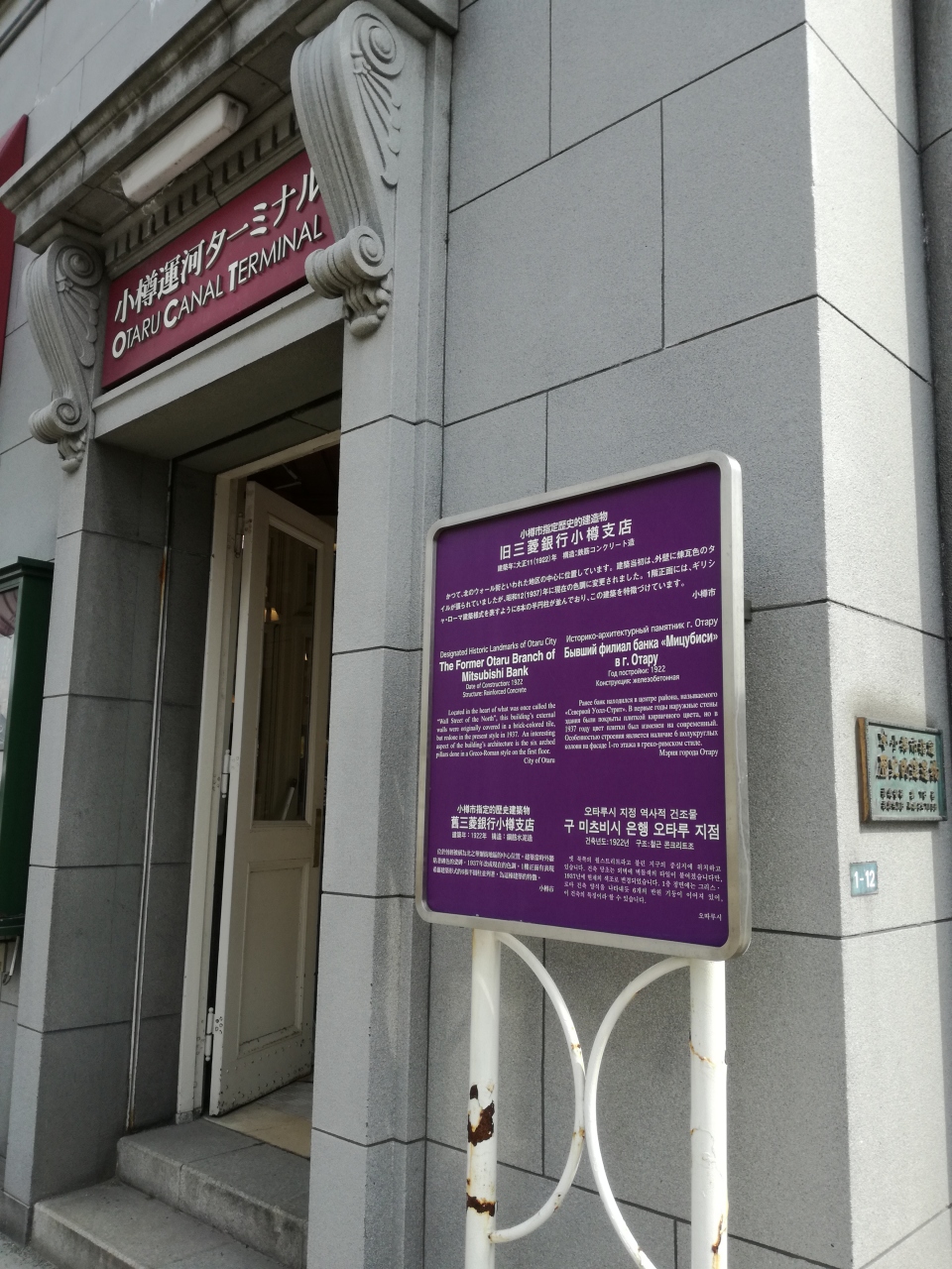 小樽市内の歴史的建造物のひとつとして指定されている旧三菱銀行小樽支店の建物を利用したバスターミナルです。建物の外観は重厚なもので立派でしたが、建物内には小樽のおみやげなど売っているお店や観光案内もあるので、バスを利用する予定がなくともおみやげを買う目的で利用することもできます。