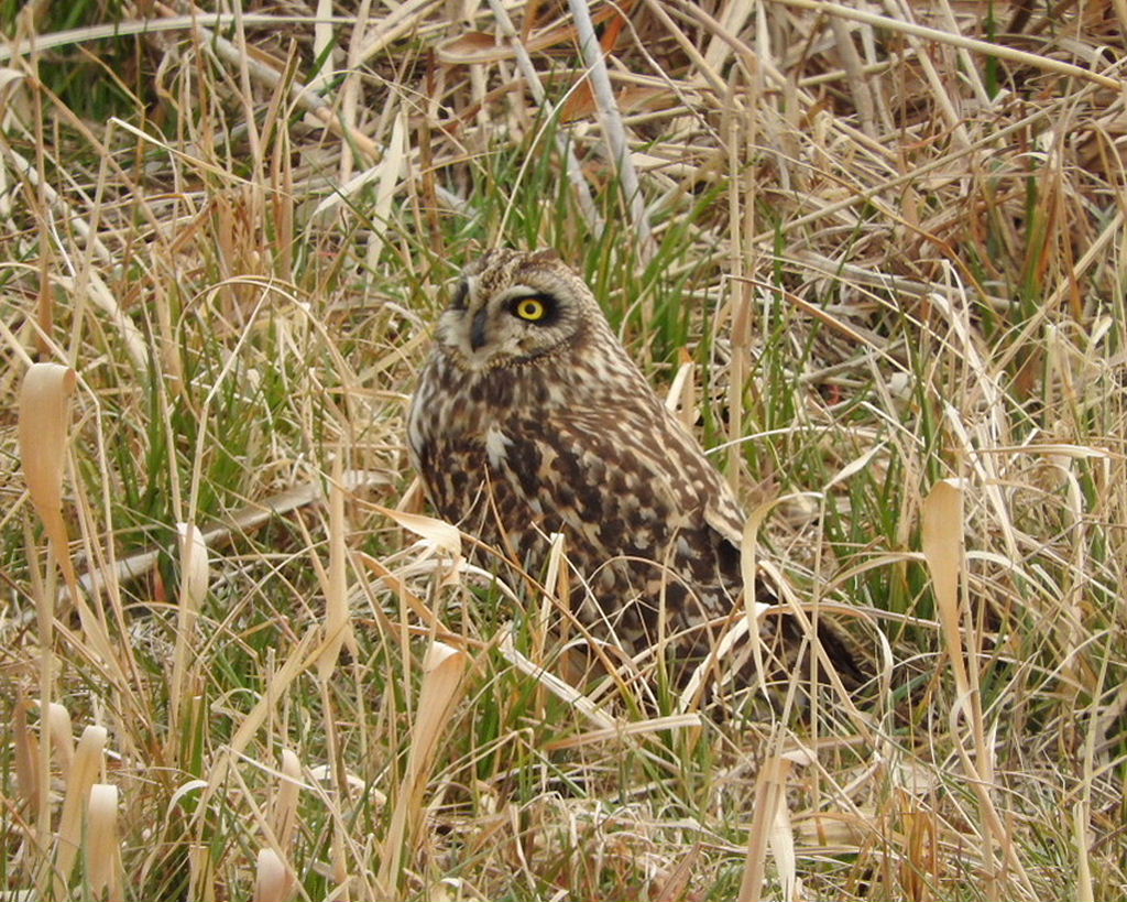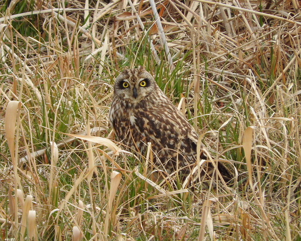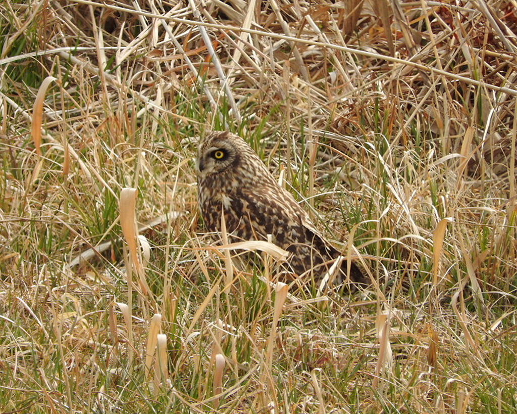 今回は、堤防道路下の草地で静かにうずくまっていたので、どこか悪いのかと思って近づいてみたら、急に飛び立って逃げていきました。餌を食べて満腹になって、静かに休息をとっていたものと思われます。コミミズクさん、驚かしてゴメンナサーイ。