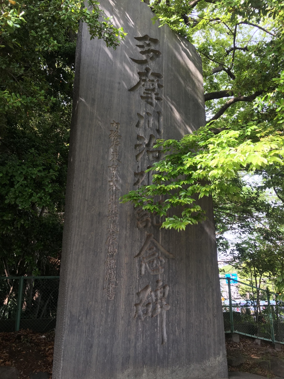 昭和初期に完了した多摩川の治水工事を記念したものです。