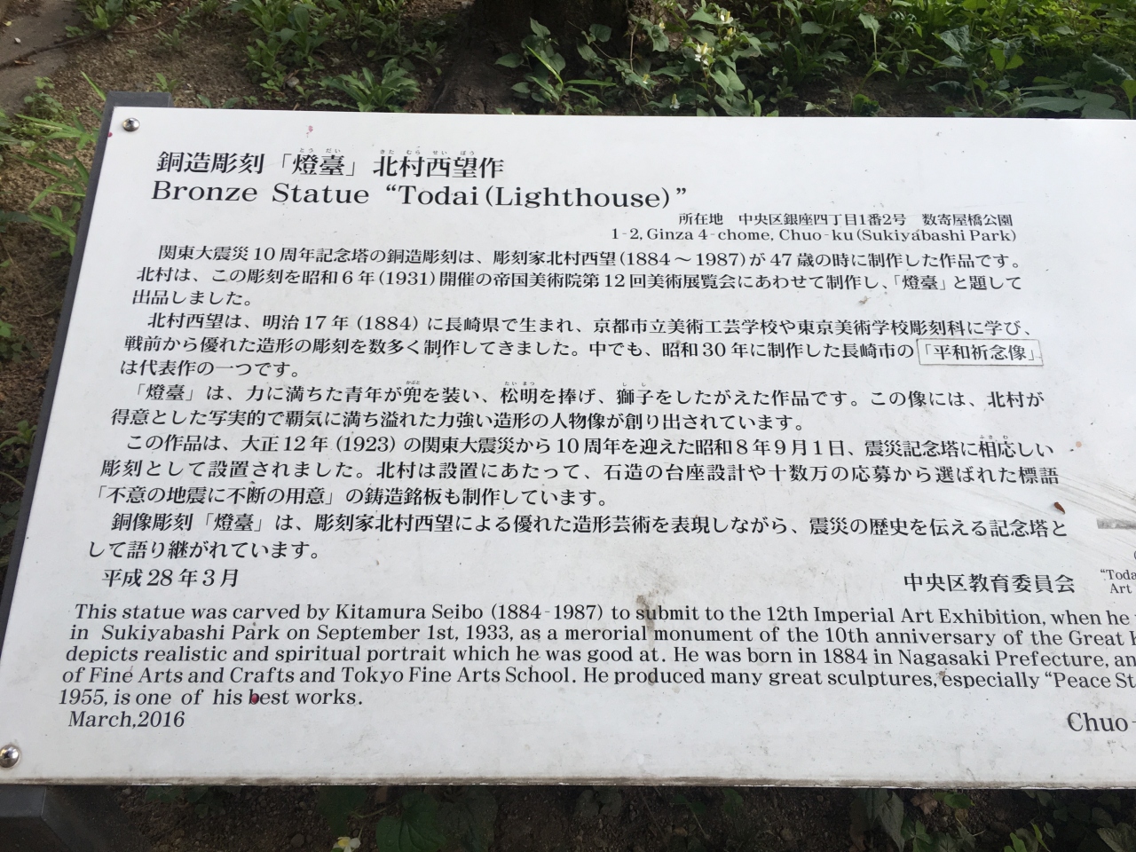 数寄屋橋公園内にあると書いてあったので、最初は公園内を探しましたが、見つけられず、諦めて帰る途中で見つけました。