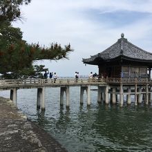 ここの見ごたえは、もちろん浮御堂本堂もそうですが、松の木!本堂に続く橋の上にまで迫っていて迫力満点でした。