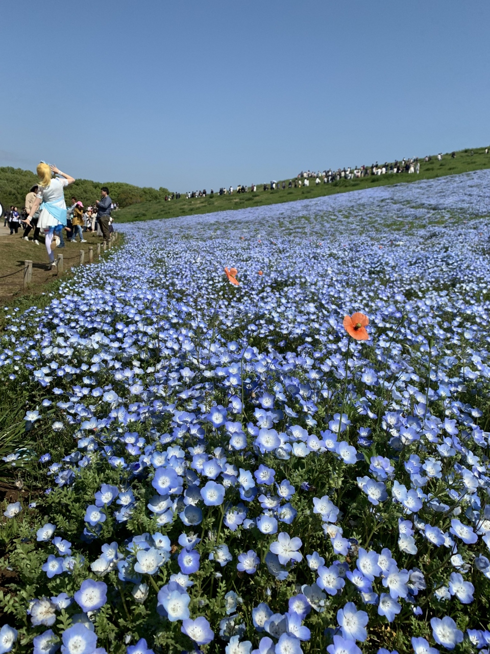 ゴールデンウィーク、ひたち海浜公園は、ネモフィラを始めとするお花の絶景を見る人で大混雑します。