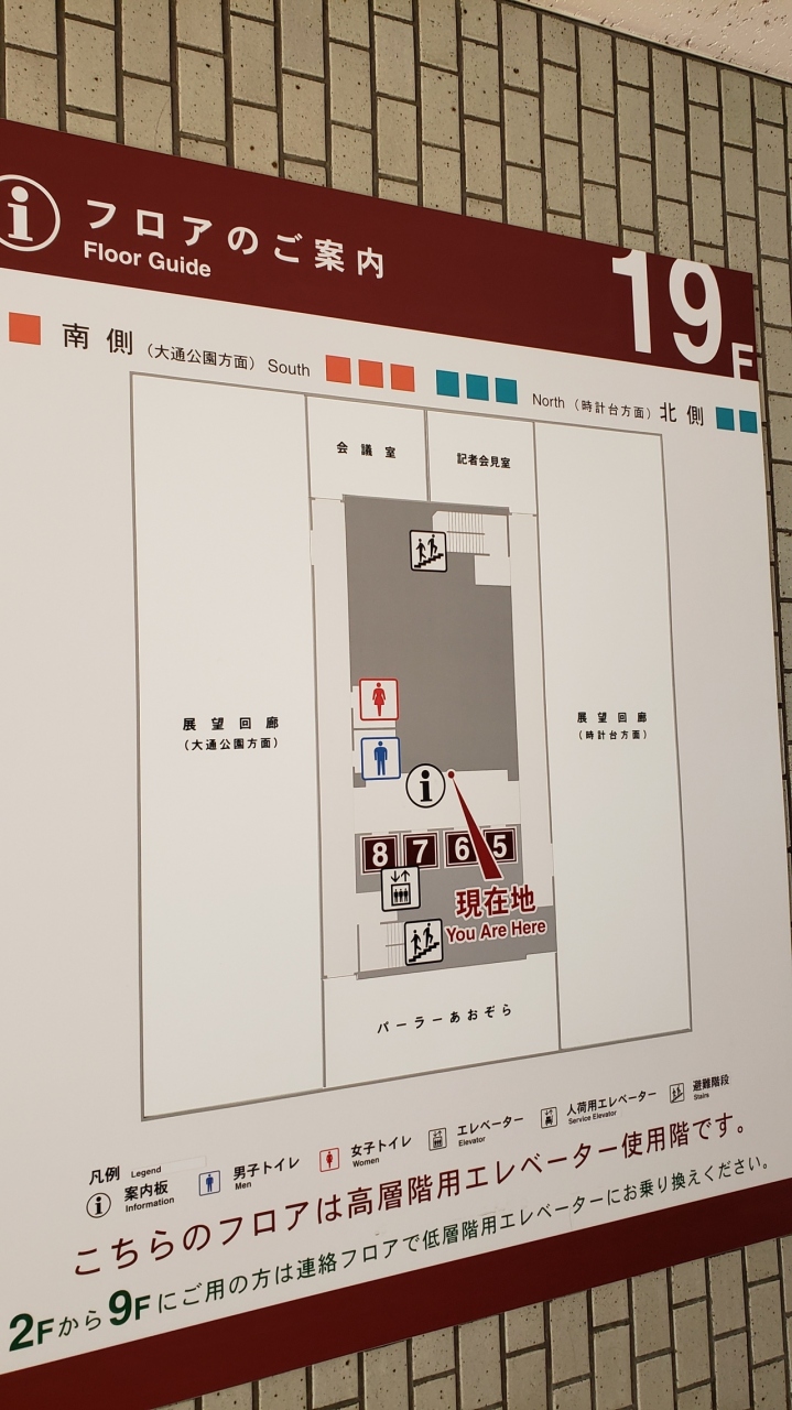 19階にはレストランもあり、展望回廊は南北にあります。最近は新しくできた市役所はこのようなものが併設されていて観光客も入れるので気軽に利用しますがこちらは北国なのに外なんですよね~神戸とかは屋内なのに。