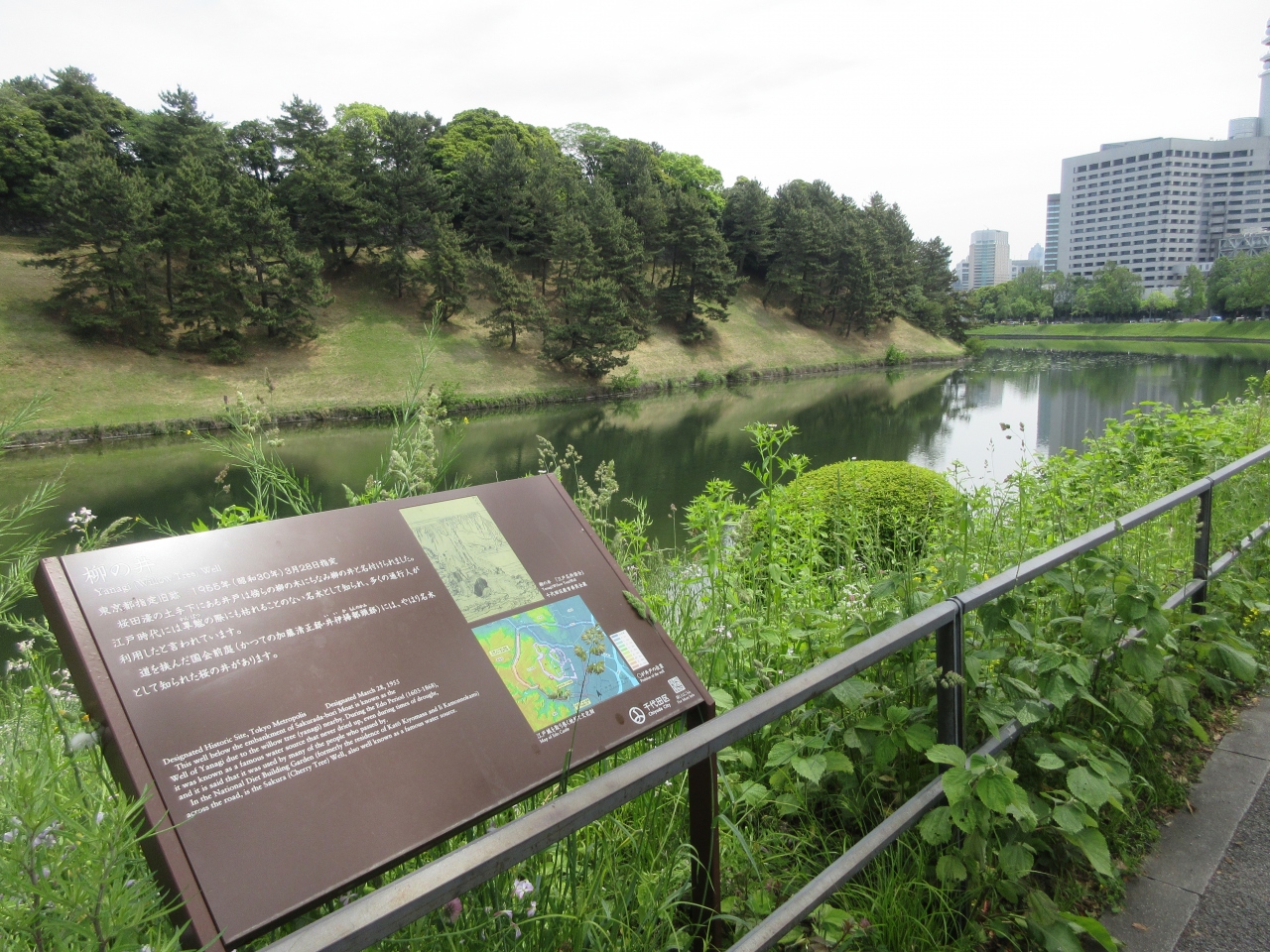 桜田門から桜田濠沿いを600mほど行った濠の土手の中に説明板が建っています。江戸時代に枯れることがない名水として、通行人が利用していたそうです。説明板からは草が茂っていて見ることはできませんが、目を凝らすと説明板から400mほど離れた濠沿いから、痕跡だと思われる井戸らしき積み重ねられた石垣が見えます。江戸時代は人々にとって命の水だったと思います。内堀通りを挟んで向かいに造られた国会前庭にも、桜の井と名付けられた井戸が残っています。こちらは容易に見ることができます。