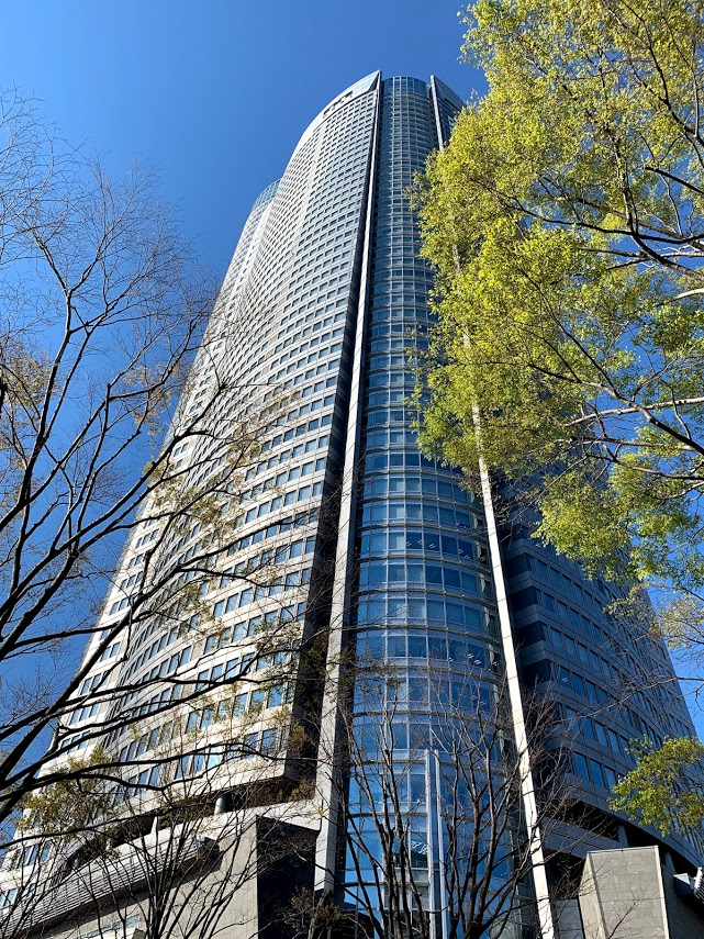 平日朝8時前の六本木ヒルズは、まだ通勤客は少なく、人はまばらです。4月になり木々の緑が鮮やかになり、森タワーが青空を背景に美しくそびえていました。植え込みの花も彩りを増し、新年度を飾るにふさわしい光景でした。六本木駅からのエスカレーターで2階に上がると、森タワーのベストビューポイントがあります。順光の午前中がベストです。