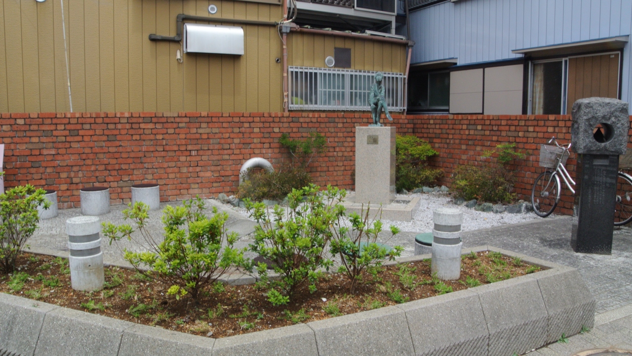蔵造りの通りの北端交差点にあり、銅像があったり、イスがあったりと、文字通りちょっとした公園になっています。東明寺に行くのに、ここから北の通りを歩きました。車道は広く車はそこそこ通りますが、観光客はほとんど歩いていませんでした。