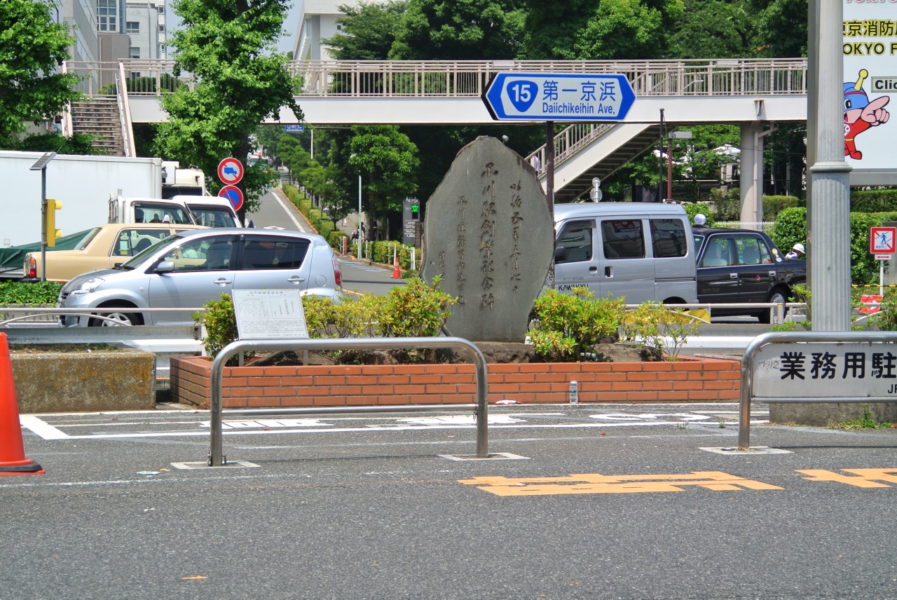 品川駅の南側にありますが、タクシー乗り場にあるので、歩いて近づくことはできません。危ないですからね~。石碑自体は大きいので遠くから見てもそれとすぐわかります。