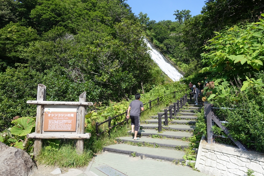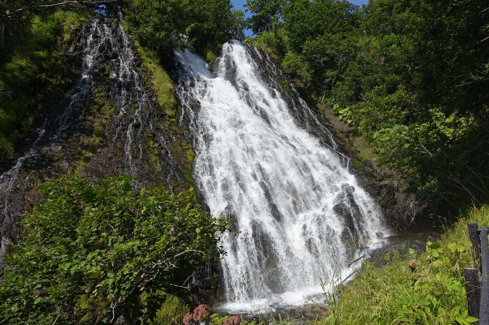 知床には多くの滝がありますが、車さえあれば比較的容易に見に行けるのがオシンコシンの滝です。バスの駐車枠もあり、観光バスで団体も来ていました。ただ、収容台数はそんなに多くないので混雑期は満車になる可能性もありそうです。