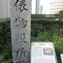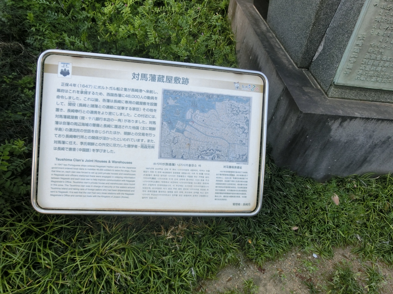 本店前の駐車場の電車通り側に、「俵物役所跡」 「対馬藩蔵屋敷跡」「 長崎商工会議所発祥の地」の石碑だが記念碑がまとめて設置されている。