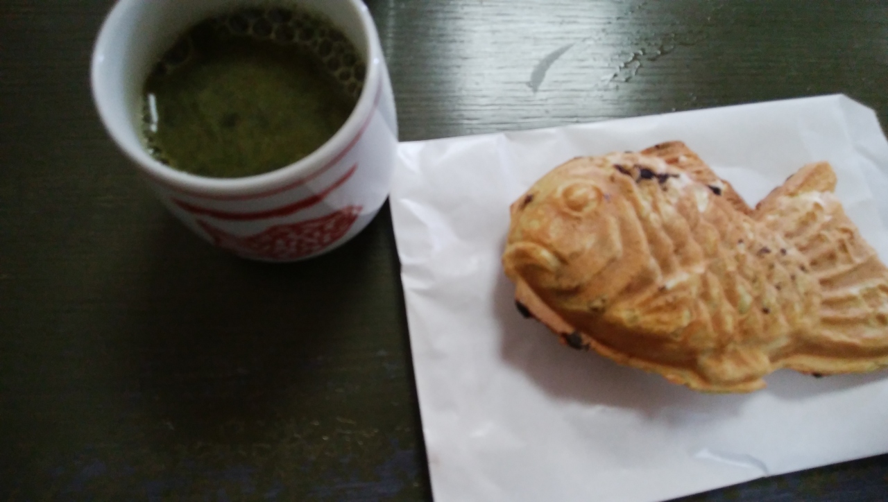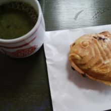 1尾180円。その場で1尾食べ、持ち帰り用に1尾。10席ほどのイートインスペースには給茶機もあり、お茶を飲みながらいただきました。