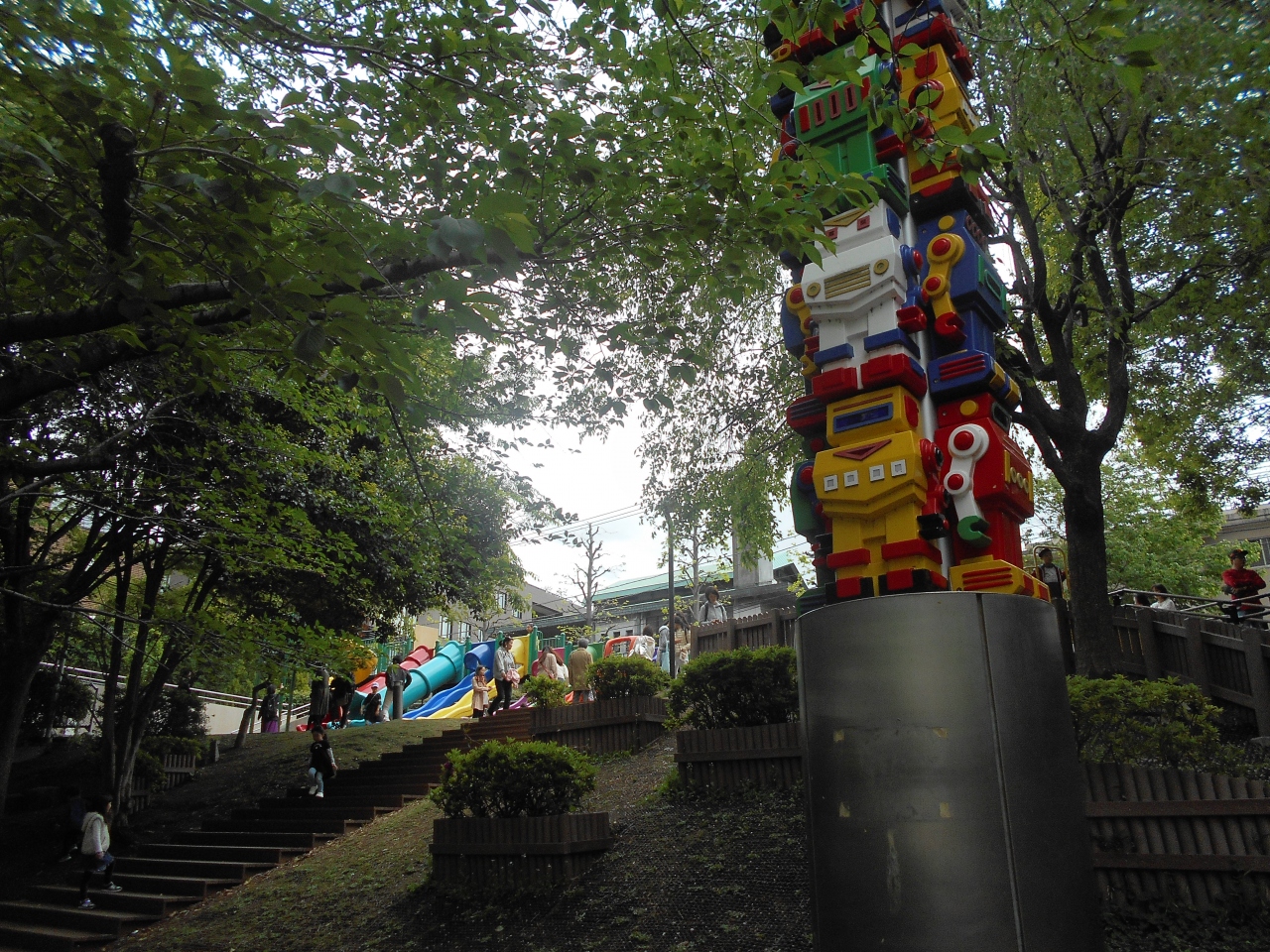 カラフルなすべり台などの遊具が多く、児童が集まって遊んでいます。親子連れの幼児も多いです。さすがに六本木の児童公園だという景観に感じました。